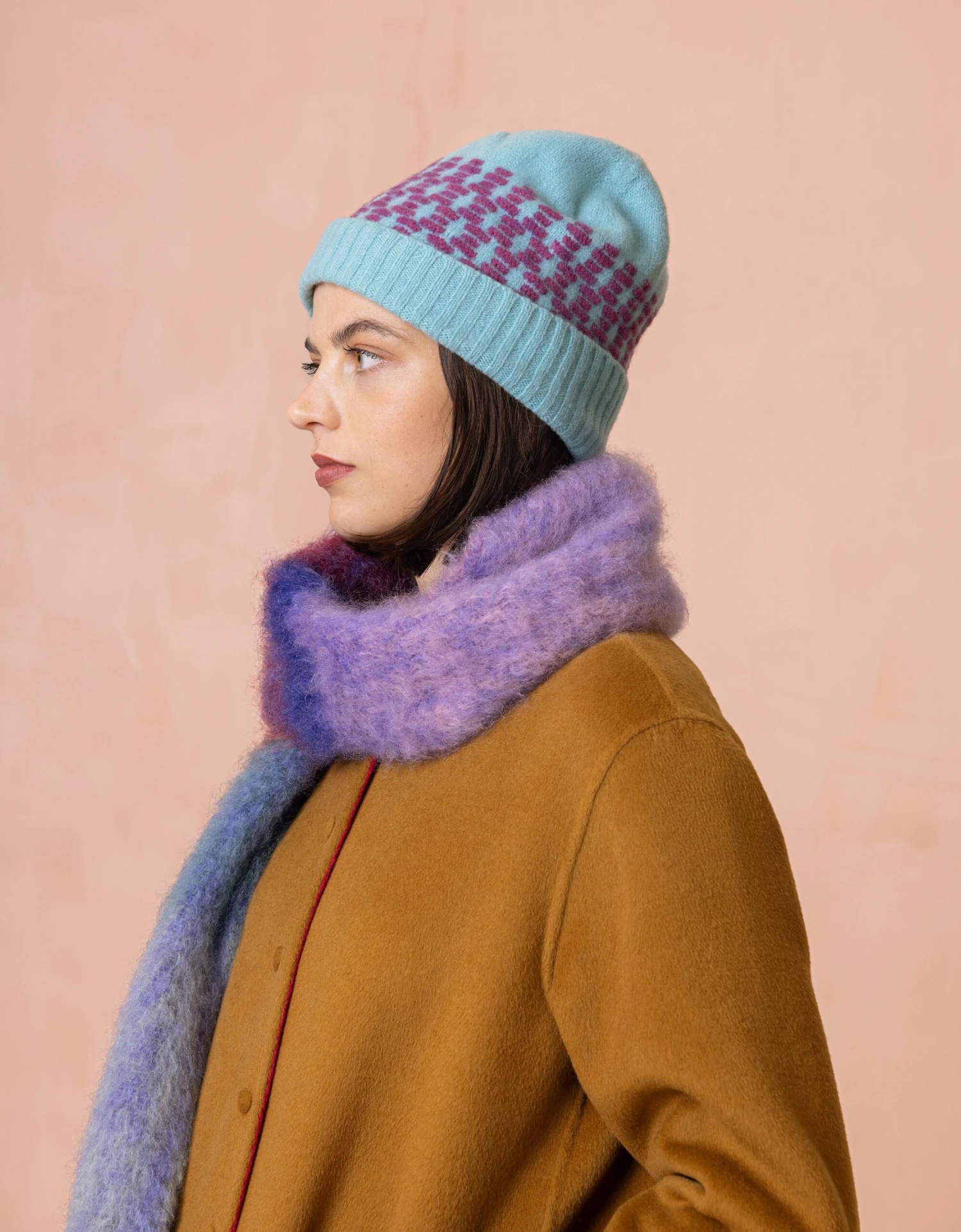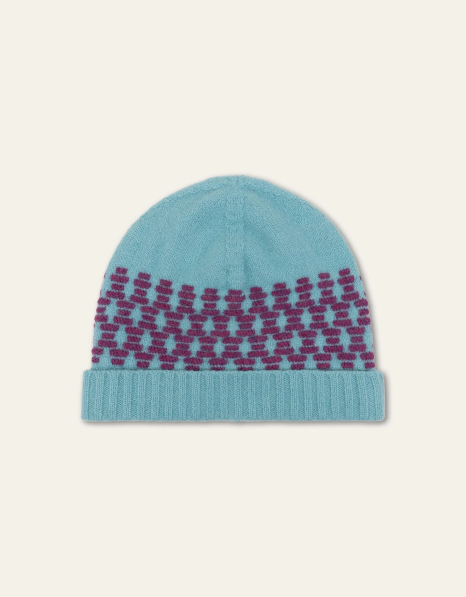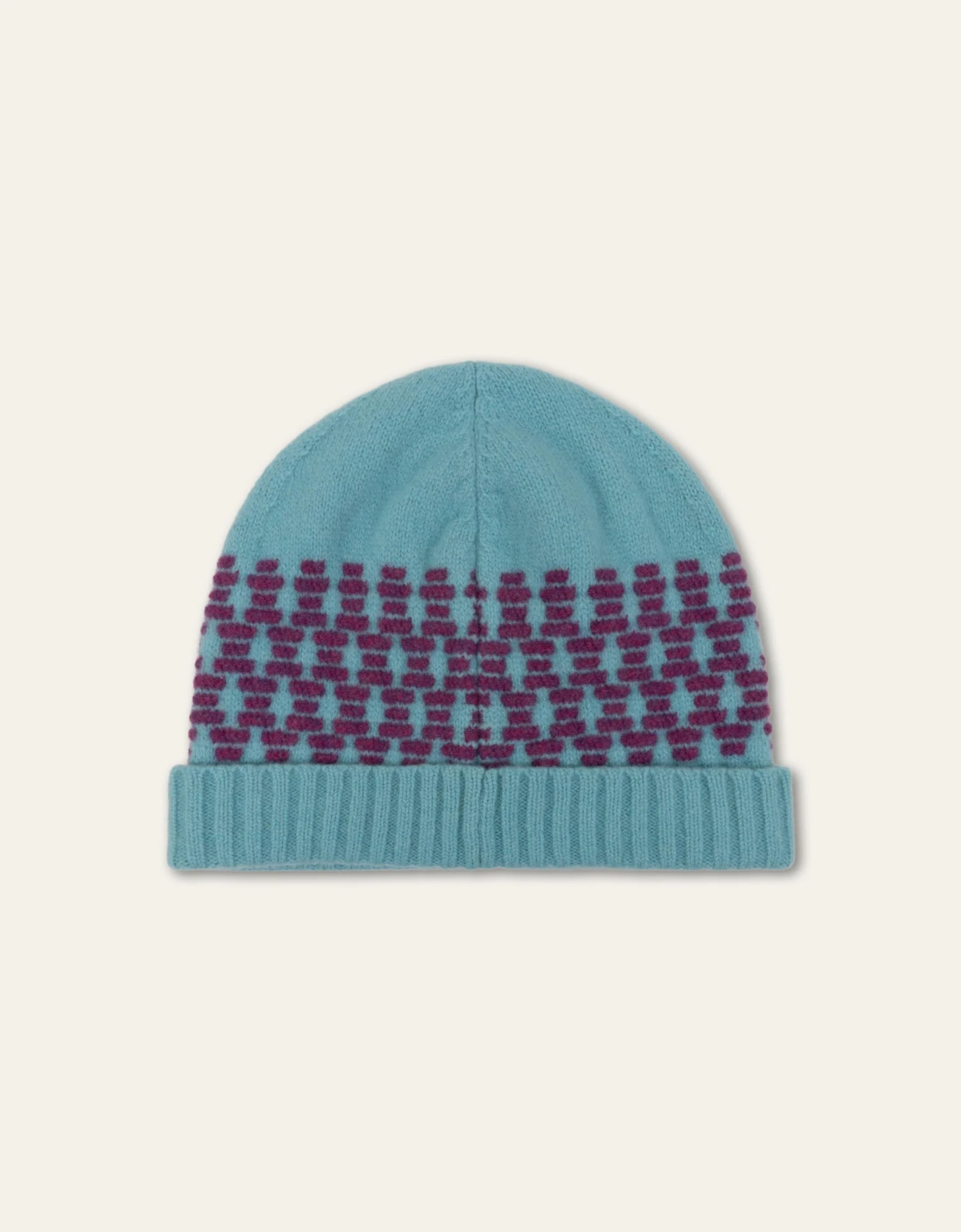 Wollen muts gebreid in een reversed Fair Isle (dat is breien met maar twee kleuren) voor een speelse touch aan je winterlook.