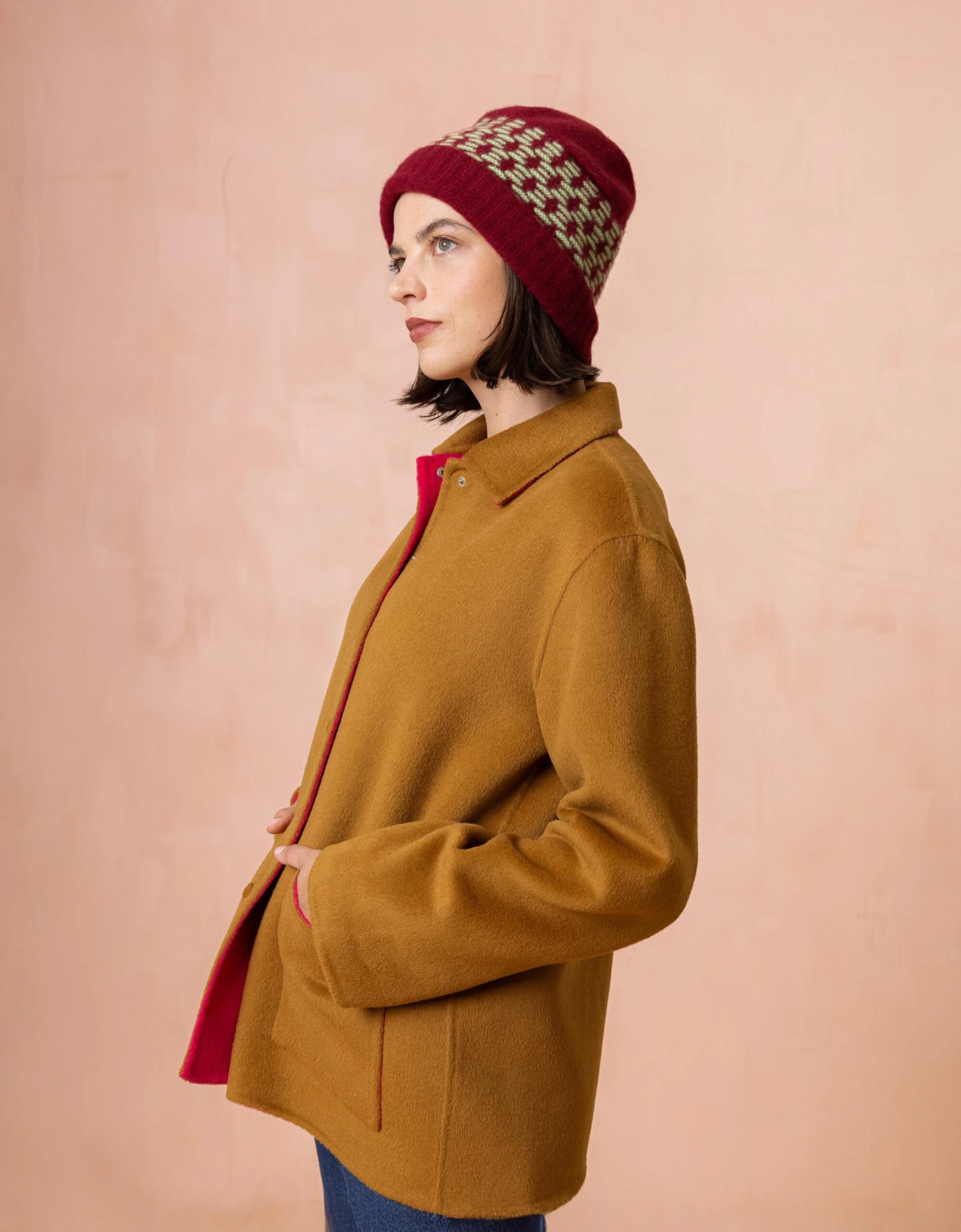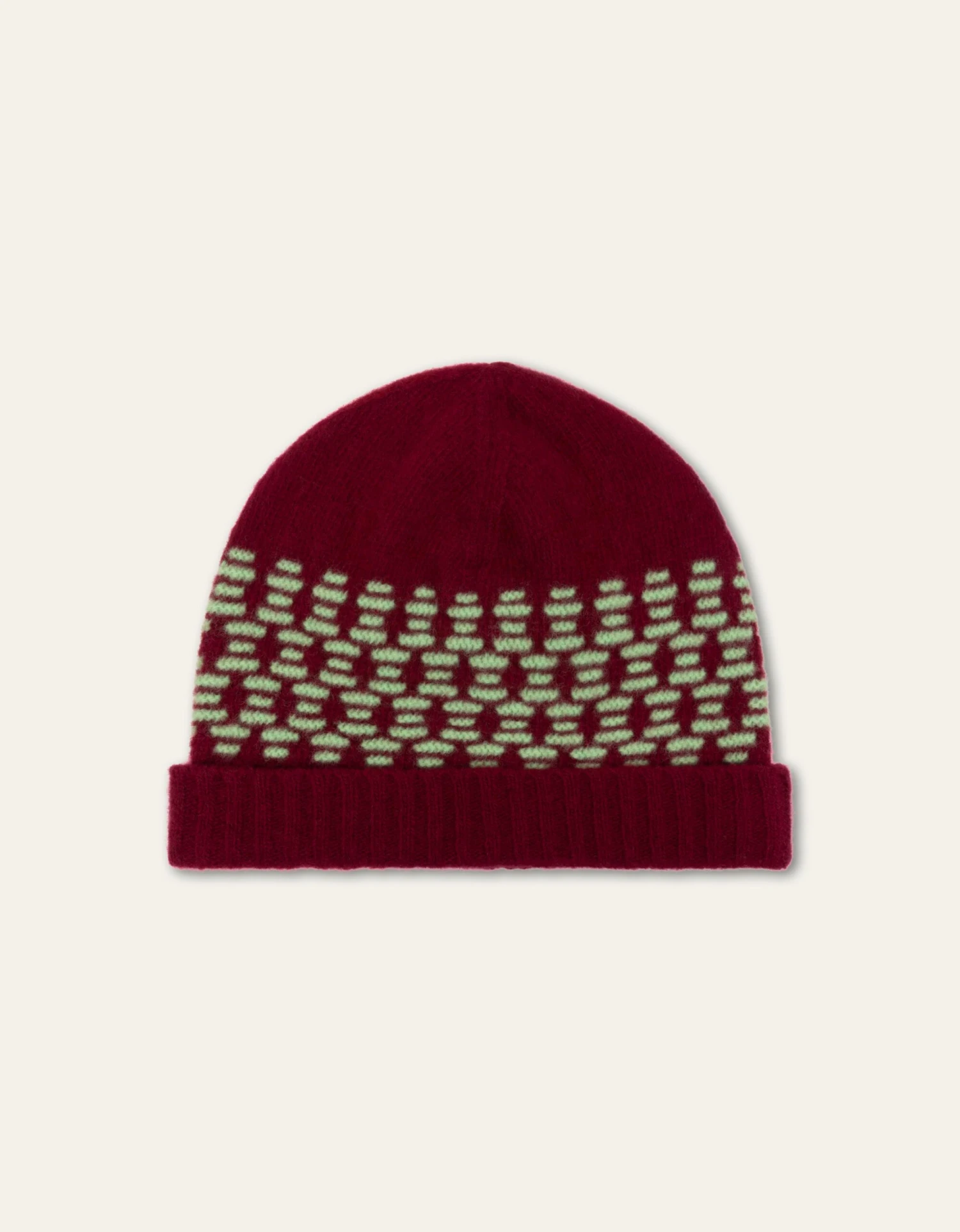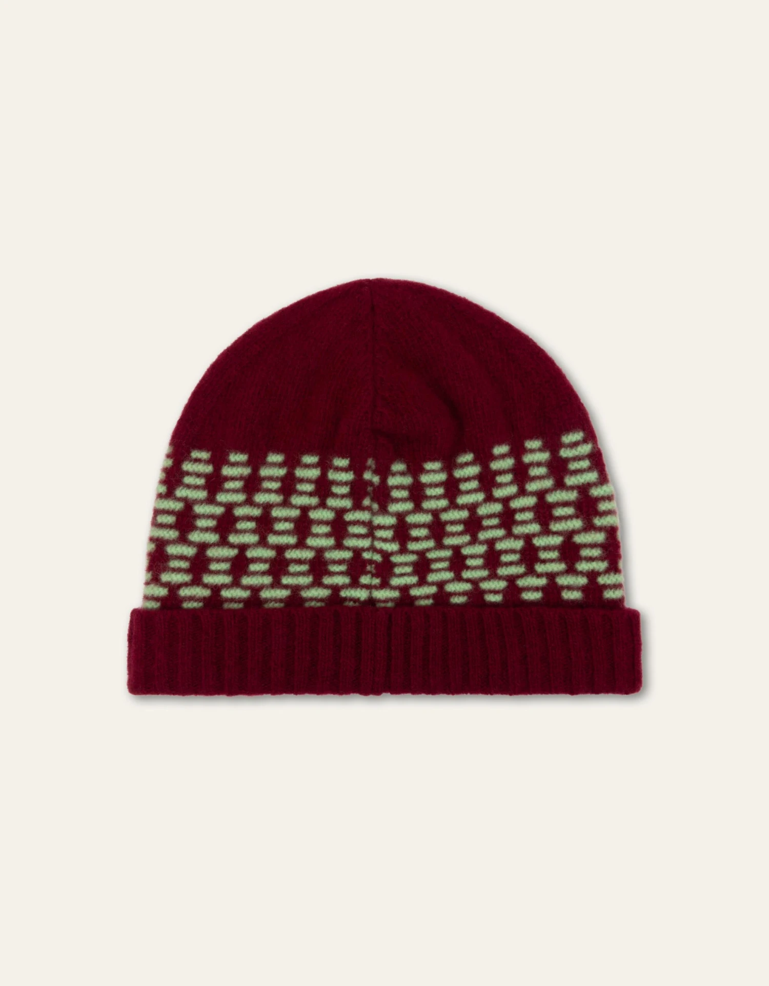Wollen muts gebreid in een reversed Fair Isle (dat is breien met maar twee kleuren) voor een speelse touch aan je winterlook.