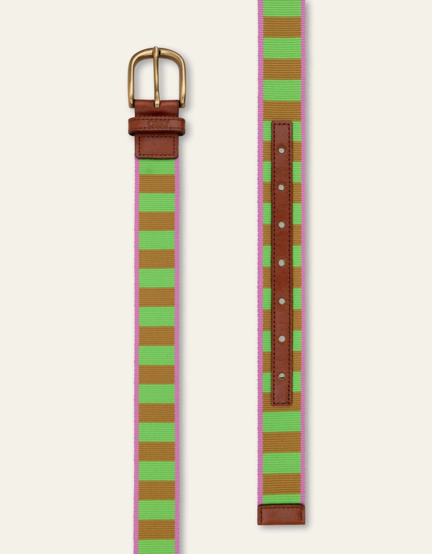 Stijl je outfit af met een mooie accessoire zoals deze riem van canvas met leer. De vrolijke strepen geven een kleuraccent aan je outfit.