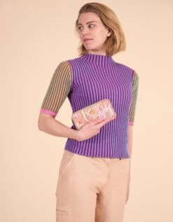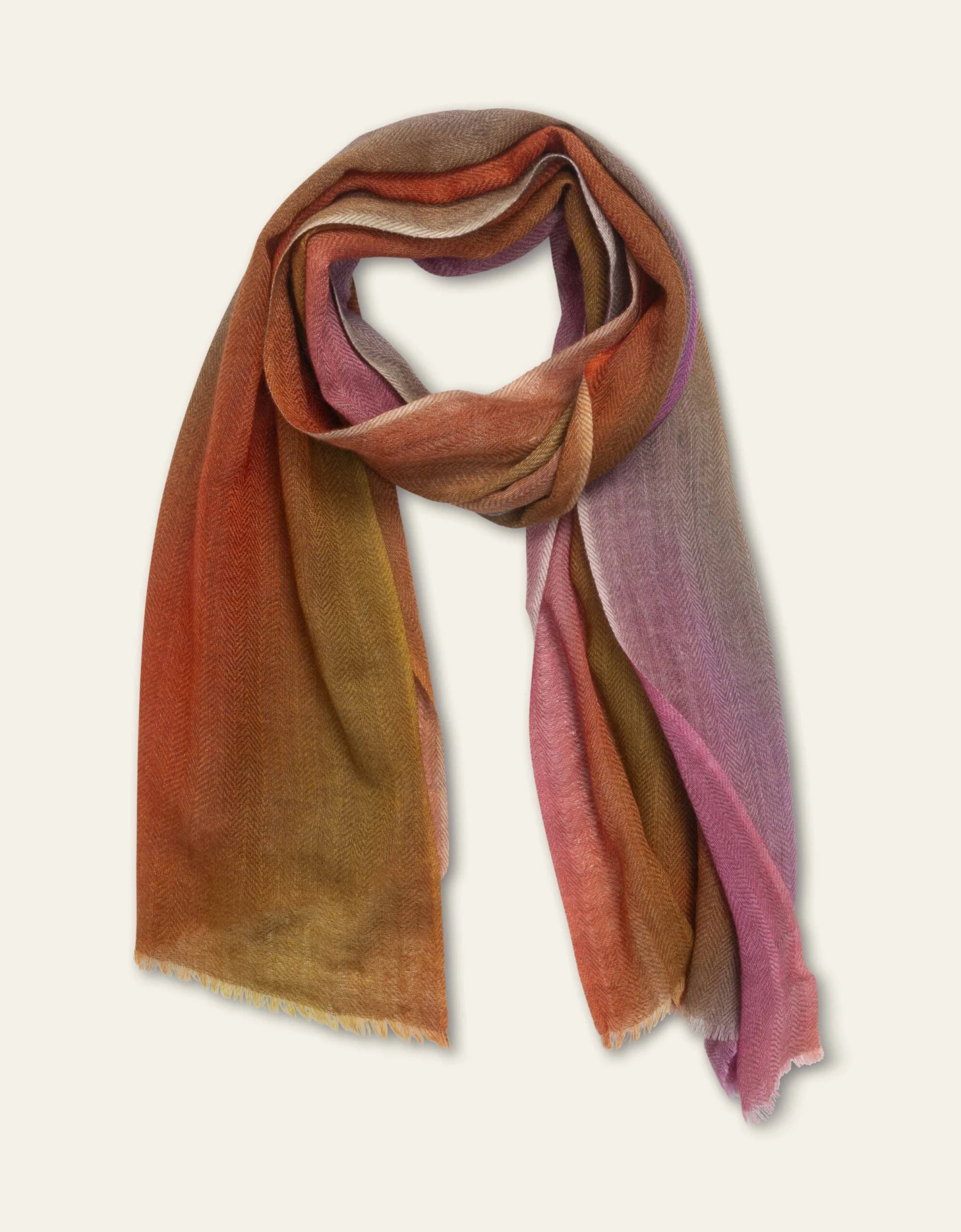 Diagonale banen in mooie kleuren komen extra mooi uit op deze heerlijke, decadente sjaal.