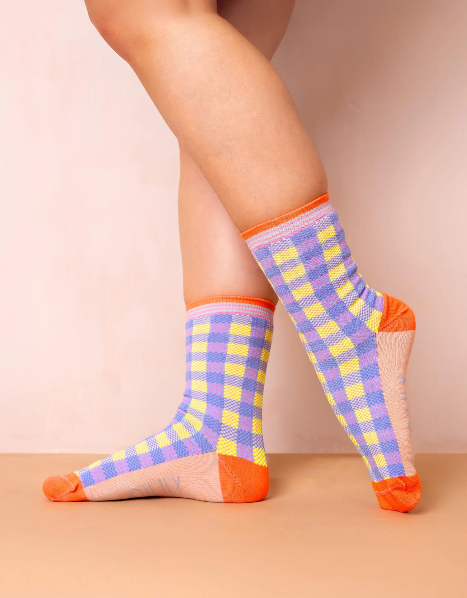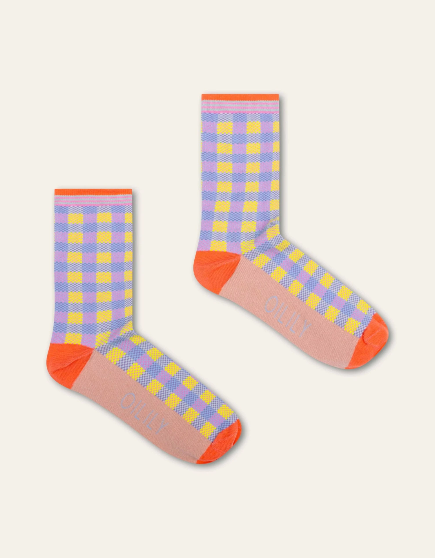A pair of cheerful socks a day, keep the sjacherijn away. Dit paar met gezellige ruitjes en colourblocking is een vrolijke toevoeging aan je sokkenla.