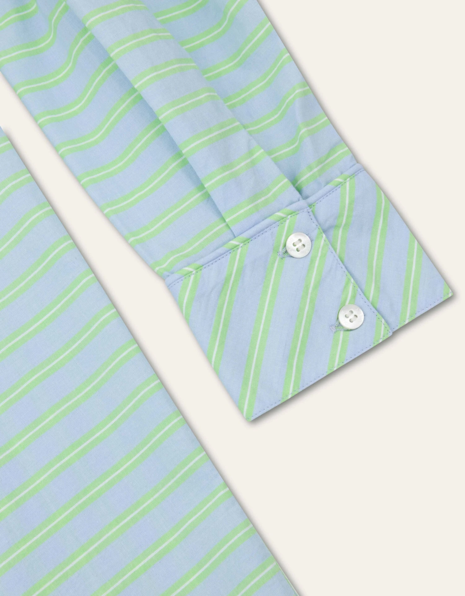 Met katoen geweven blouse met strepen die verticaal en horizontaal gaan en emaille knoopjes waarvan twee net even anders zijn. De loose fit van dit lange model maakt het ideaal om te dragen als je voor een relaxte stijl gaat.