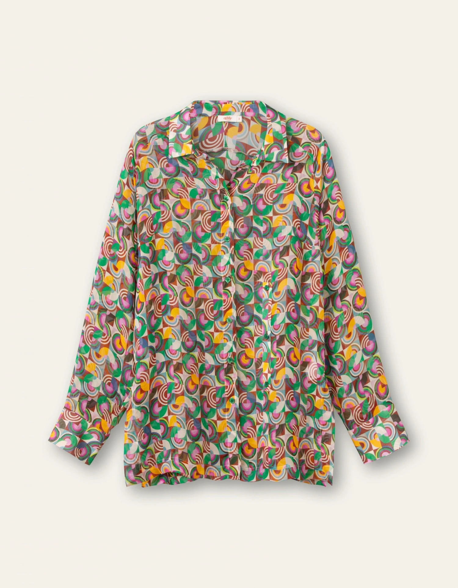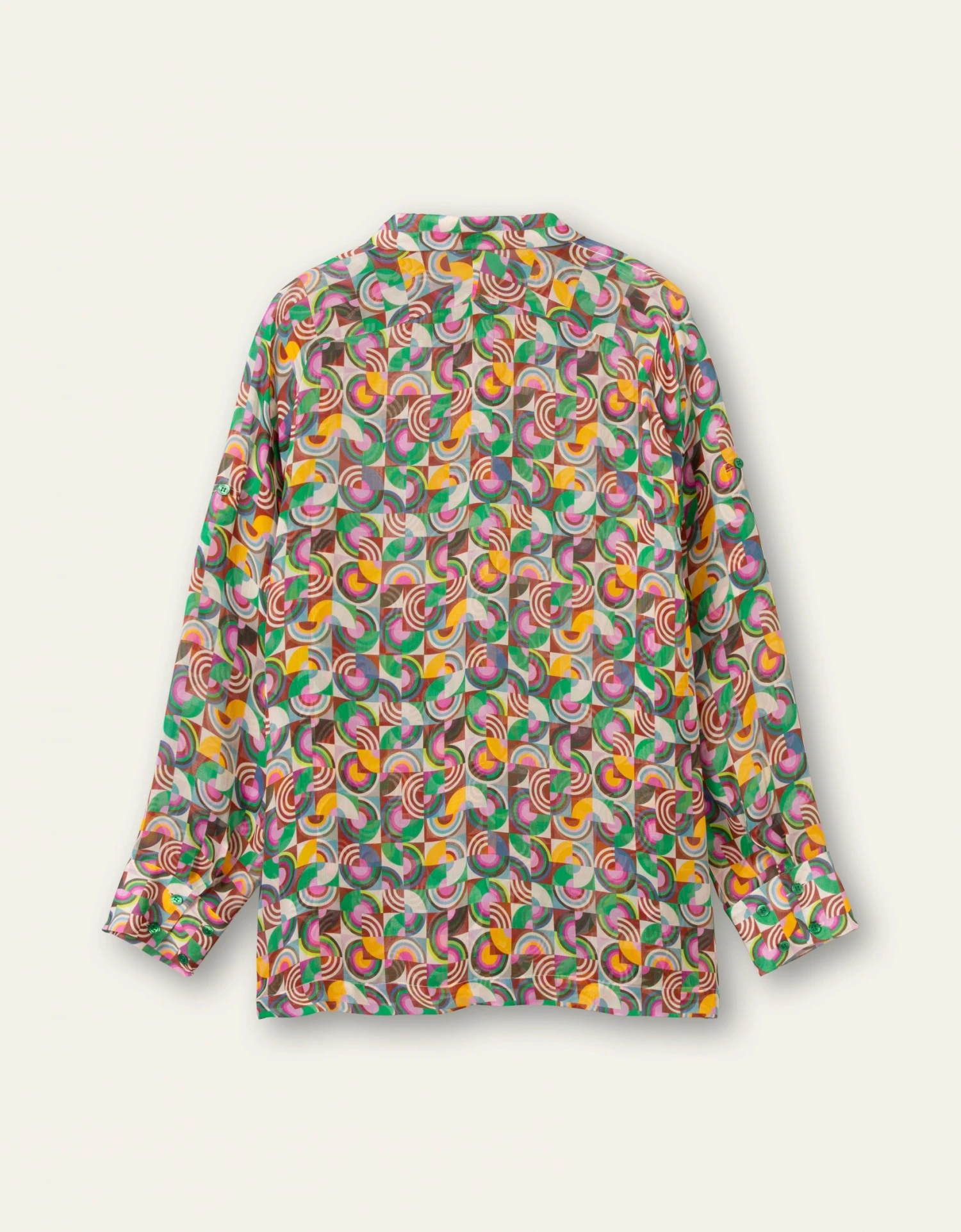 Zwier sierlijk en vrij in deze weelderige viscose, losvallende blouse. Met groene knoopjes, plooitjes op de juiste plekken en een straight fit. – 100% Viscose – Loose fit – Multicoloured