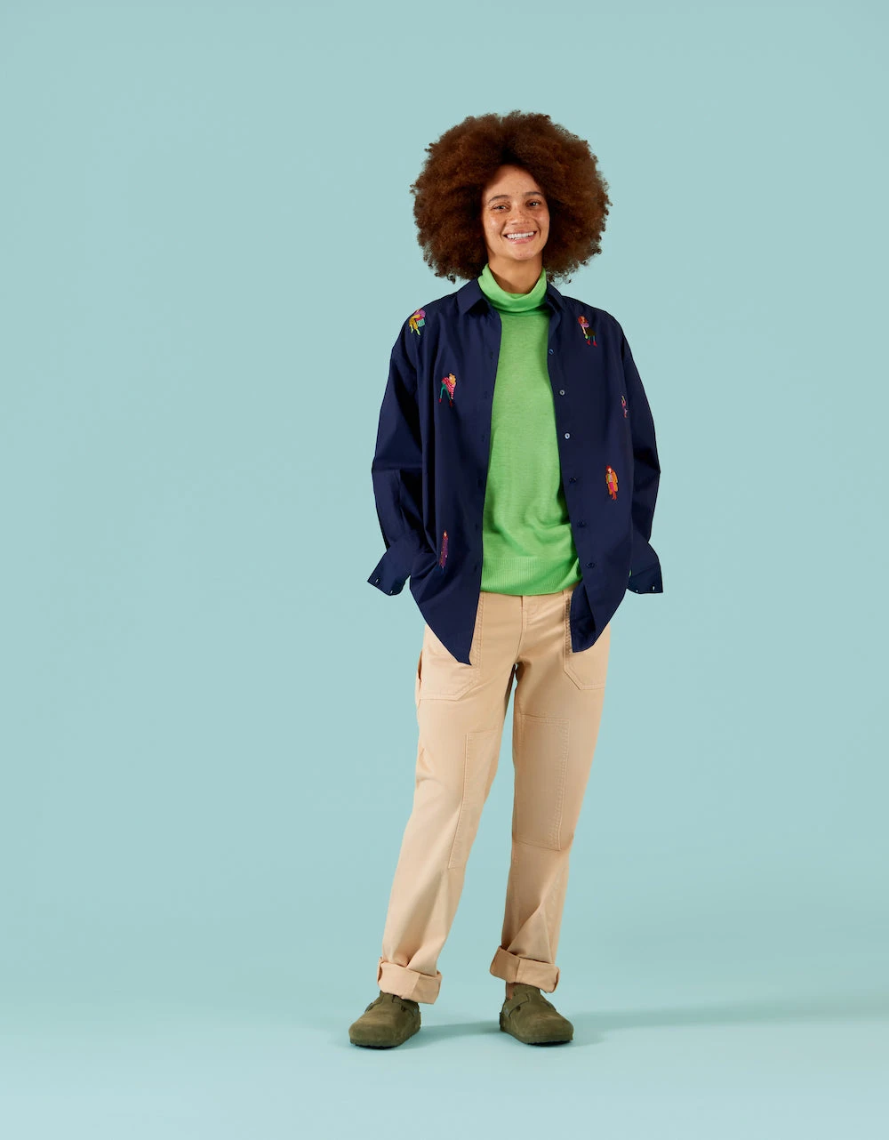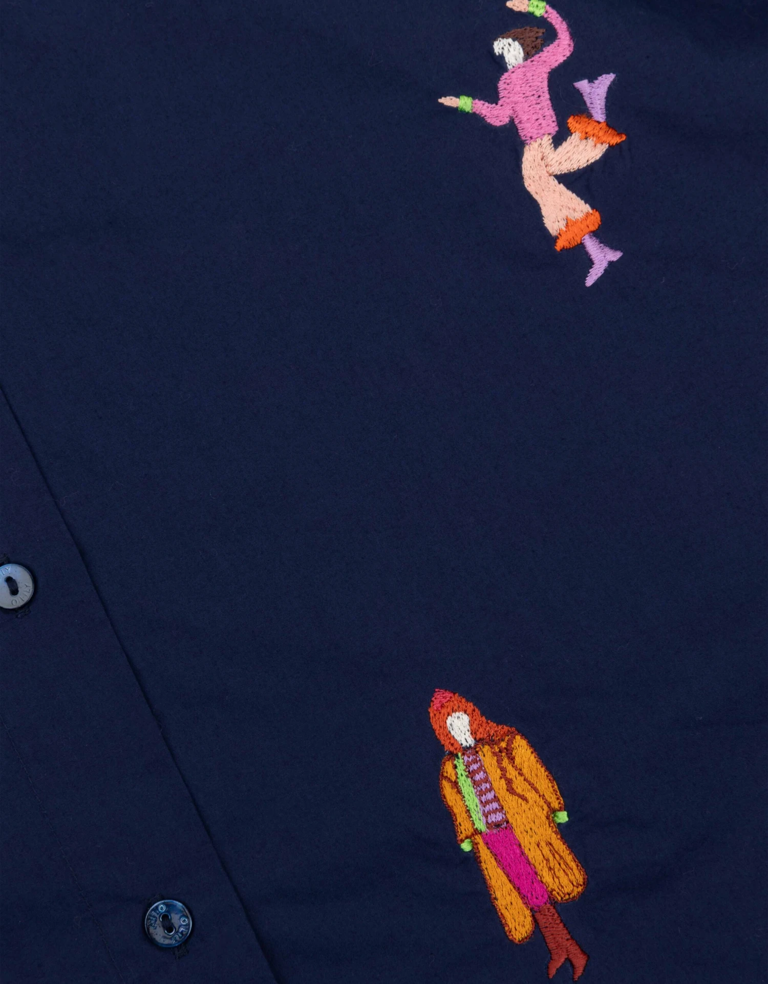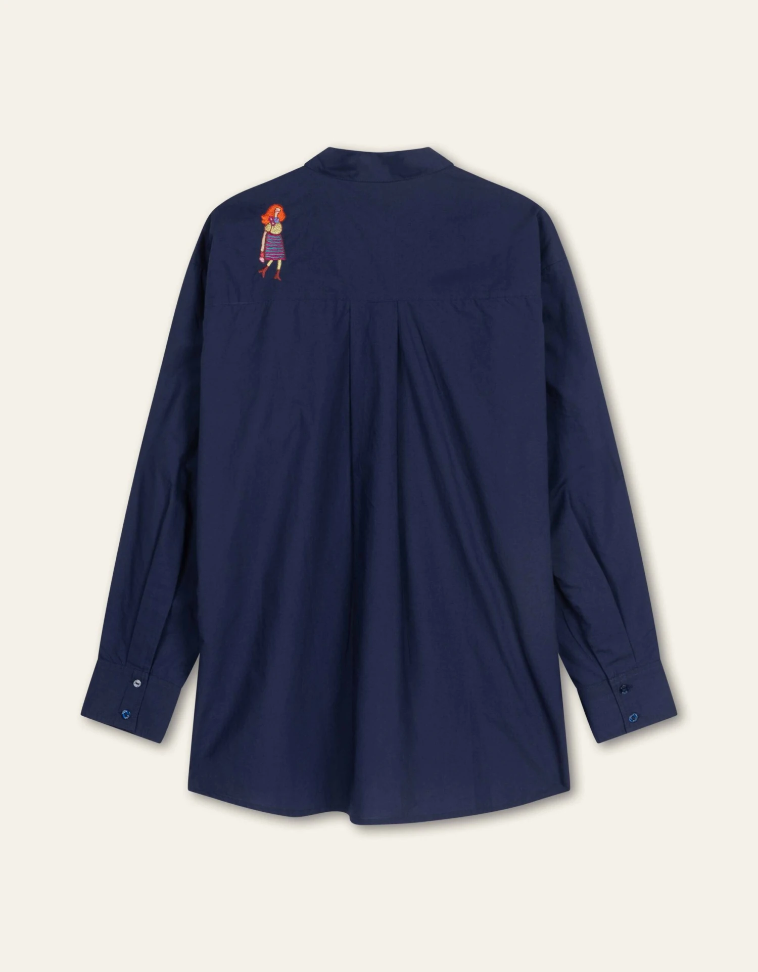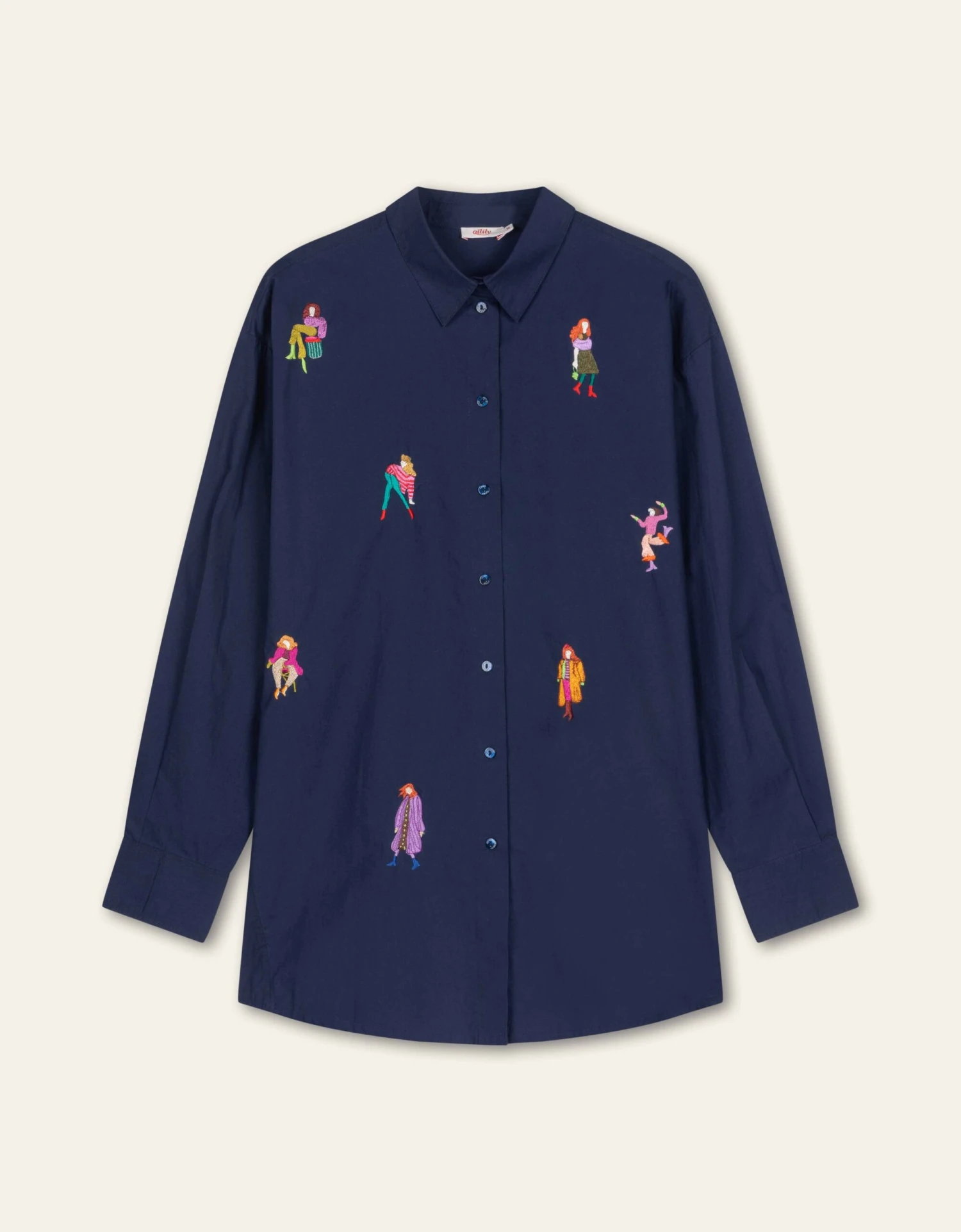 Geborduurde vrolijke ladies doen hun ding in hun eigen Oilily collecties op deze luchtige, katoenen blouse. Eentje is zelfs helemaal op de achterkant beland.