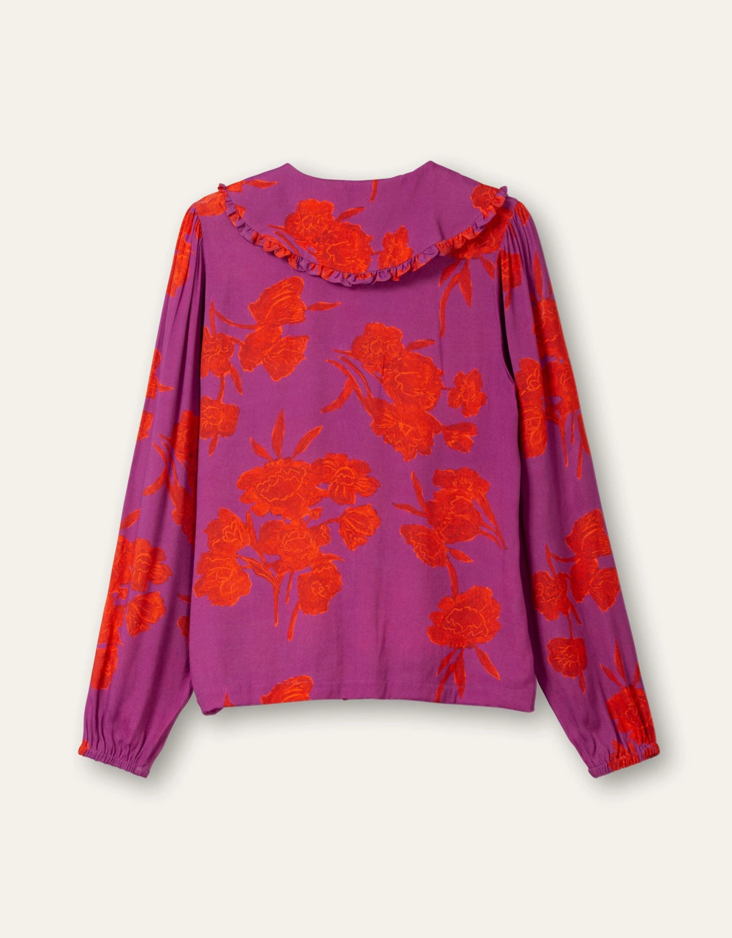 We kunnen soms allemaal wat Big Collar Energy gebruiken. Onze sierlijke Lyric print straalt bij deze blouse met zeer goede kraag en ruches. De mouwen hebben elastische manchetten voor een mooie losse pof. – 100% viscose – Regular fit – Gemaakt in Portugal
