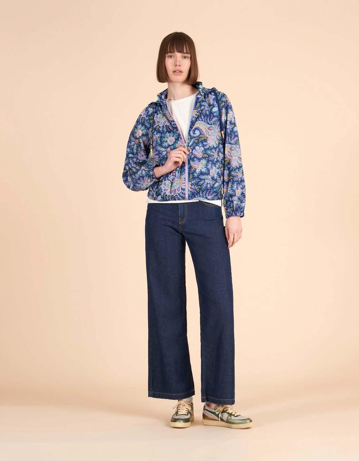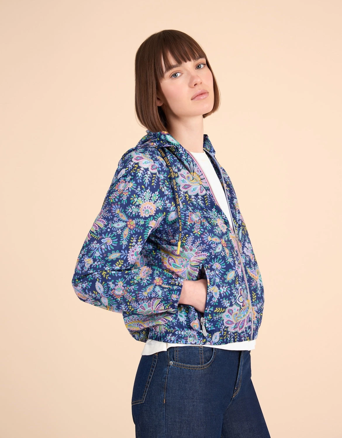 Dit jasje heeft een capuchon die weg te stoppen is zodat je hem aan kan met elk weer!