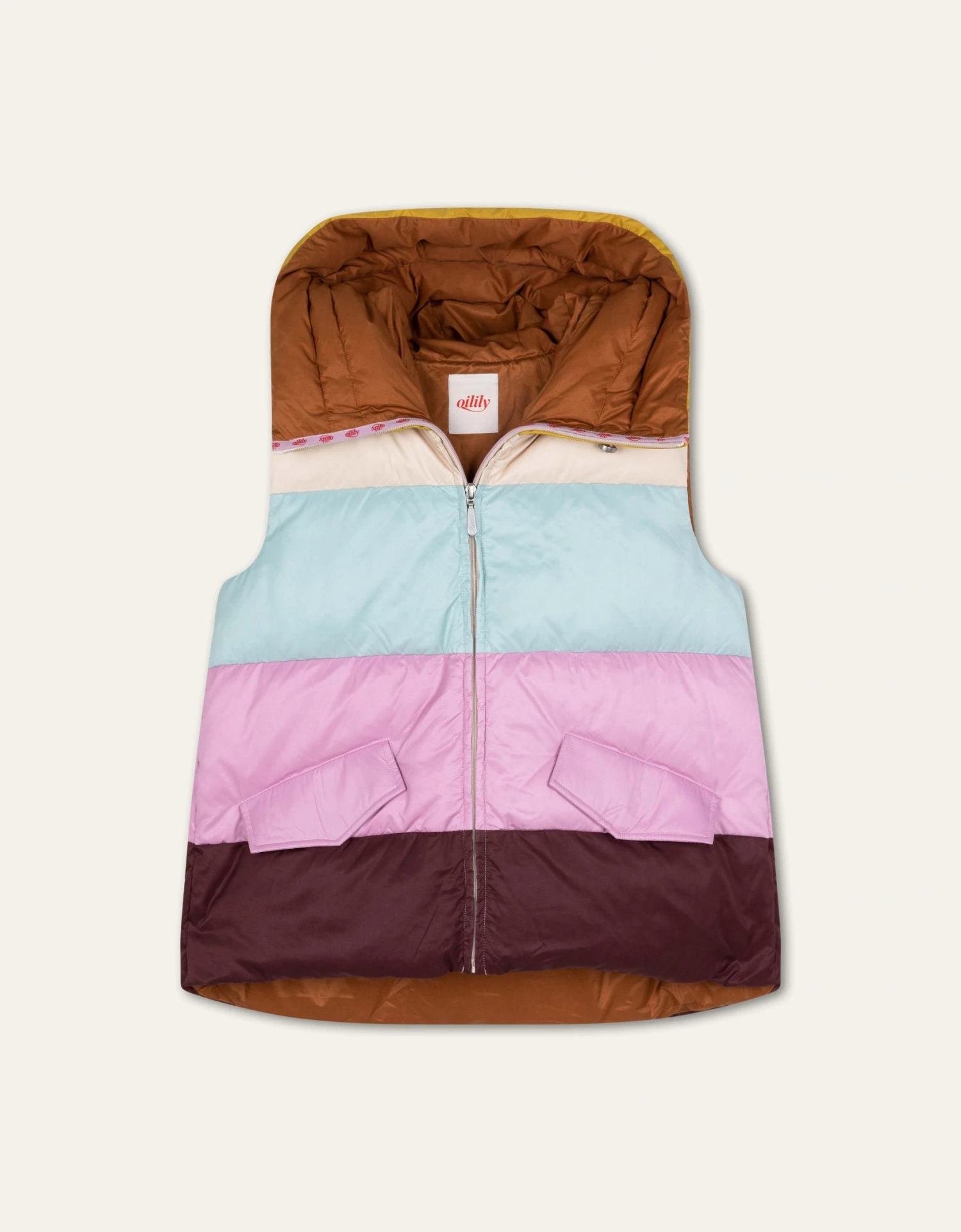 Colourblock bodywarmer dat heerlijk puffy is en je prettig warm houdt. Aan de binnenkant vind je zijdelings van de rits een Oilily-merk lint. Andere speelse details zijn de oversized capuchon met grote kraag, de Oilily badge op de borst en de ruime zakken met kleppen.