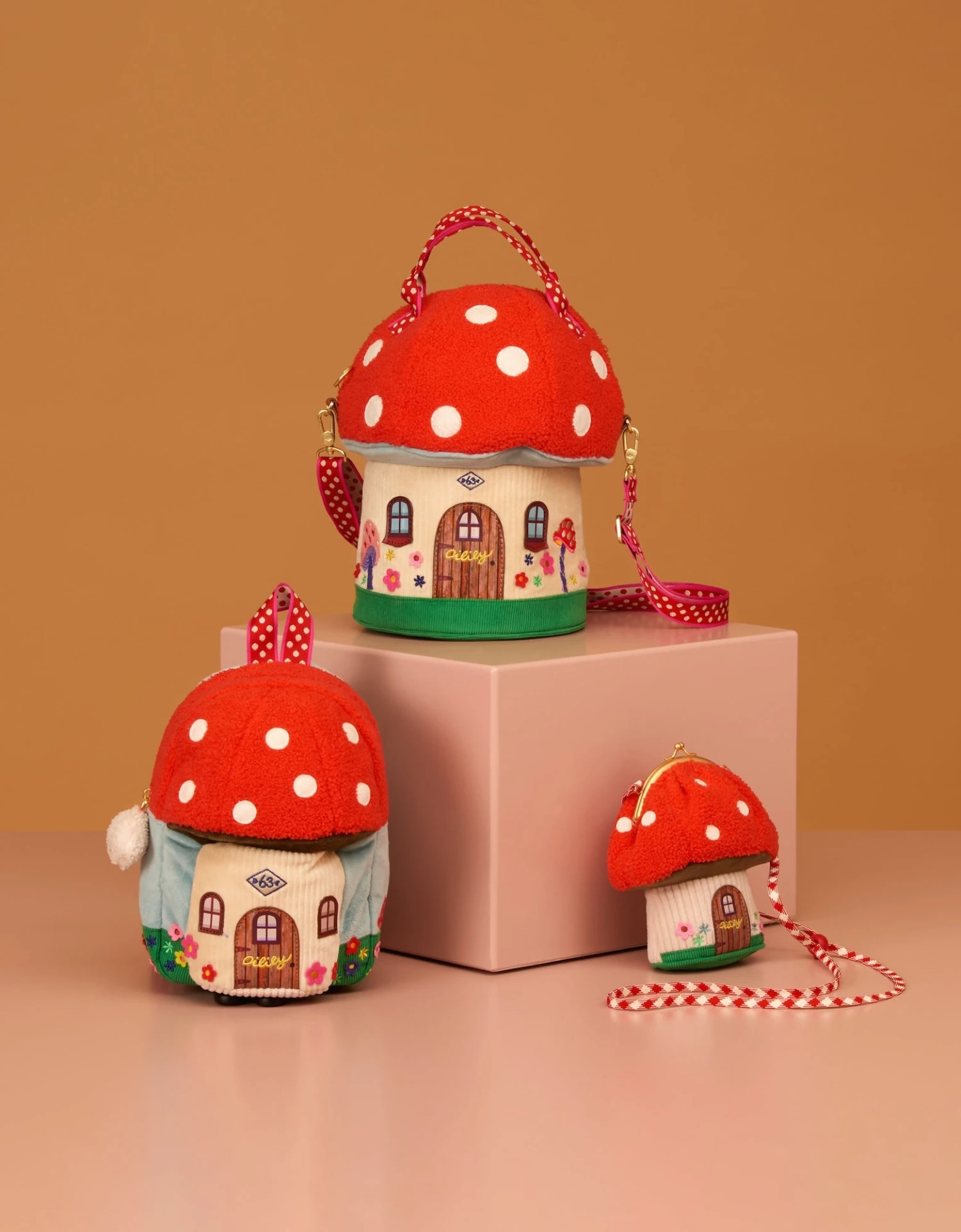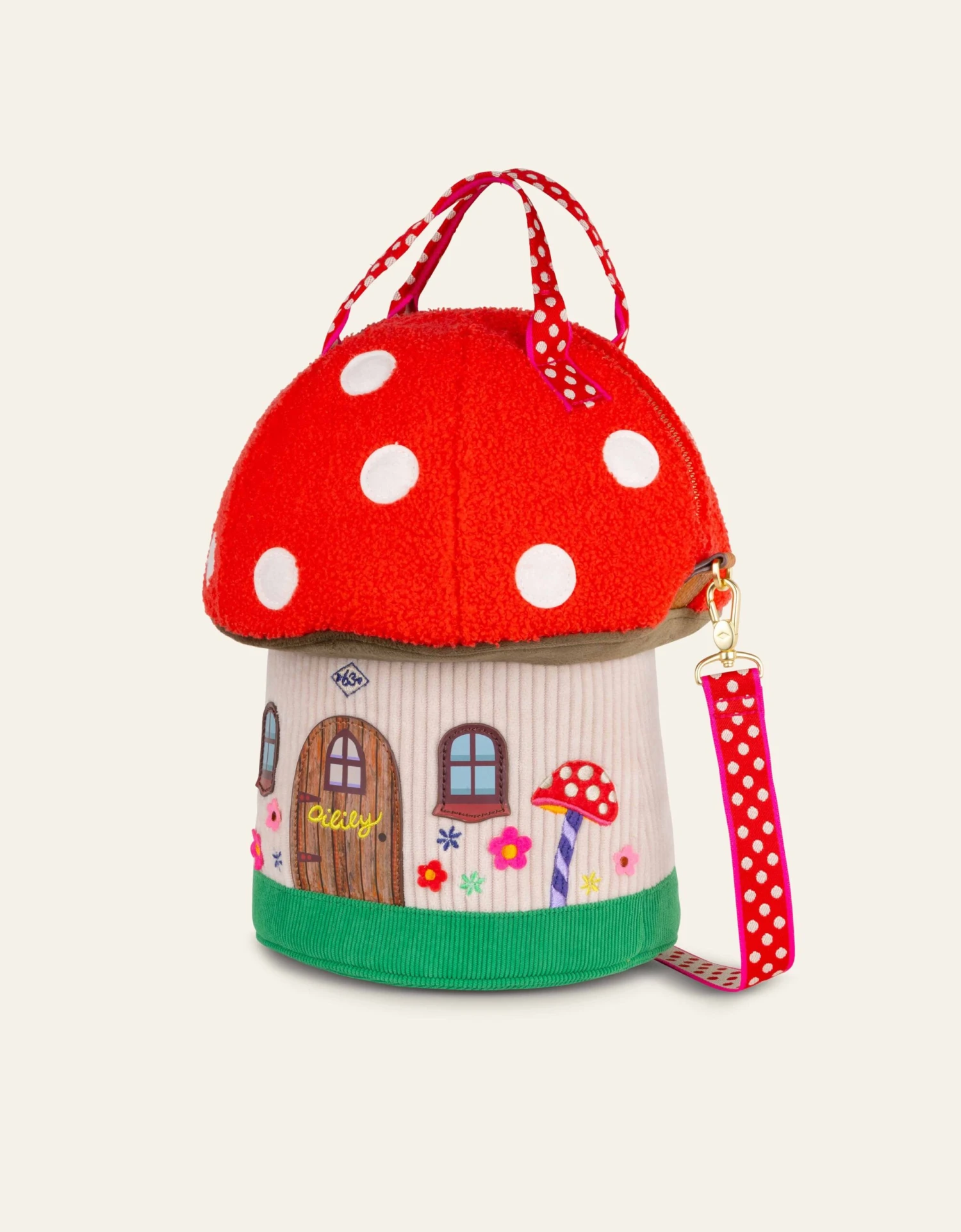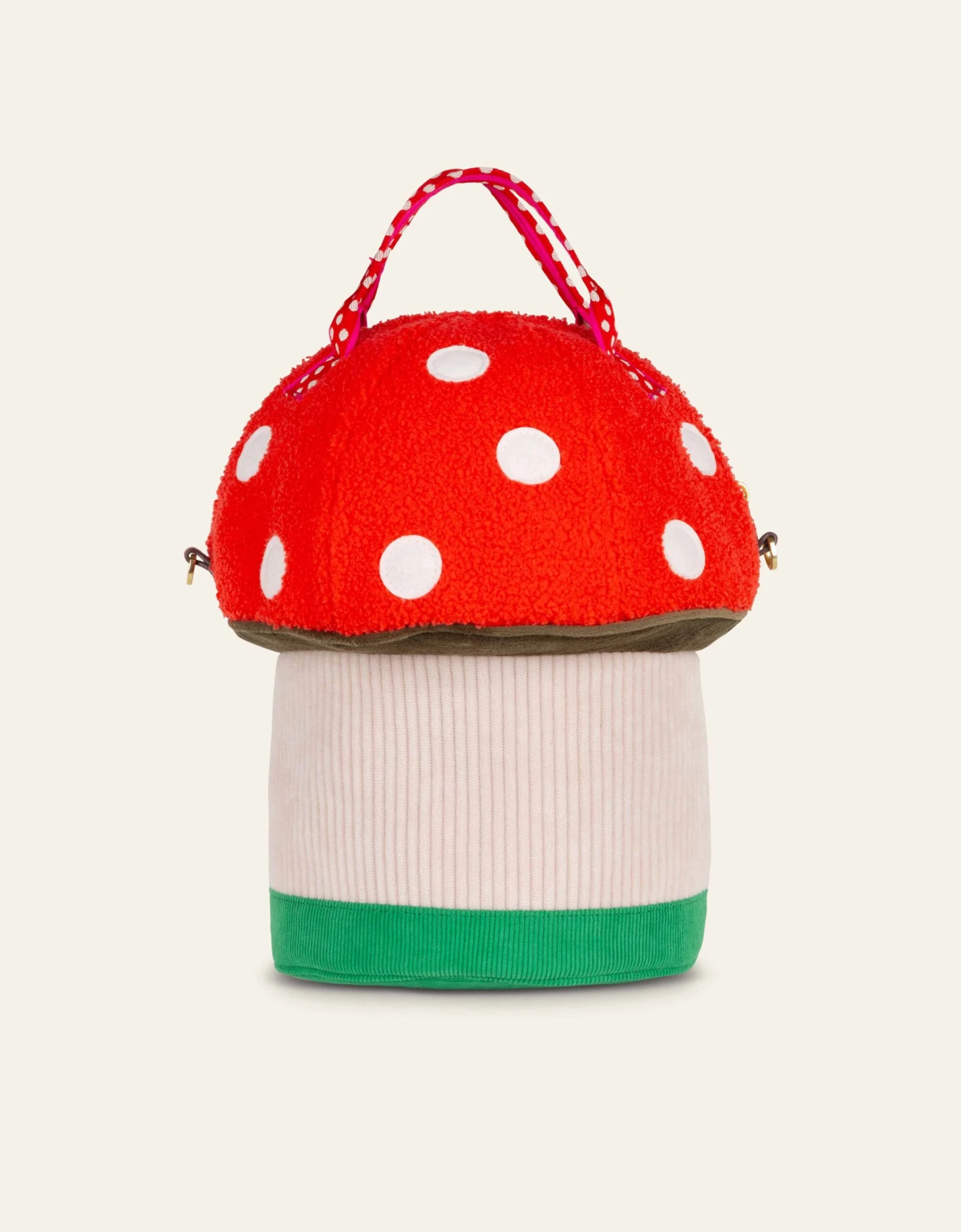 Hoi kaboutertje! Deze handtas lijkt precies op een paddenstoel! Draag hem lekker in je handen of aan de rood met witte stippen schouderband!