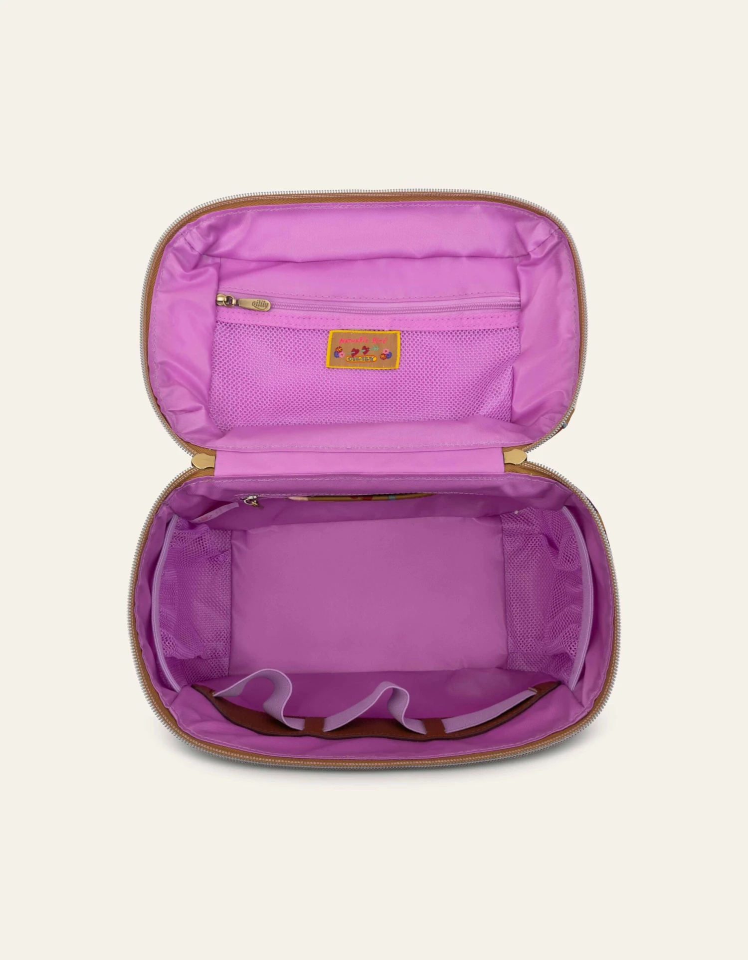 De Cocos Beauty Case in Tide Spirits print is ruim, overzichtelijk en gemaakt om al je beauty-essentials stijlvol mee te nemen. De print is ontworpen door kunstenares Nathalie Lété, bekend om haar kleurrijke en dromerige stijl. Het stevige handvat bovenop maakt haar makkelijk draagbaar, terwijl het hoofdvak met rits slim is ingedeeld zodat alles netjes op zijn plek blijft.