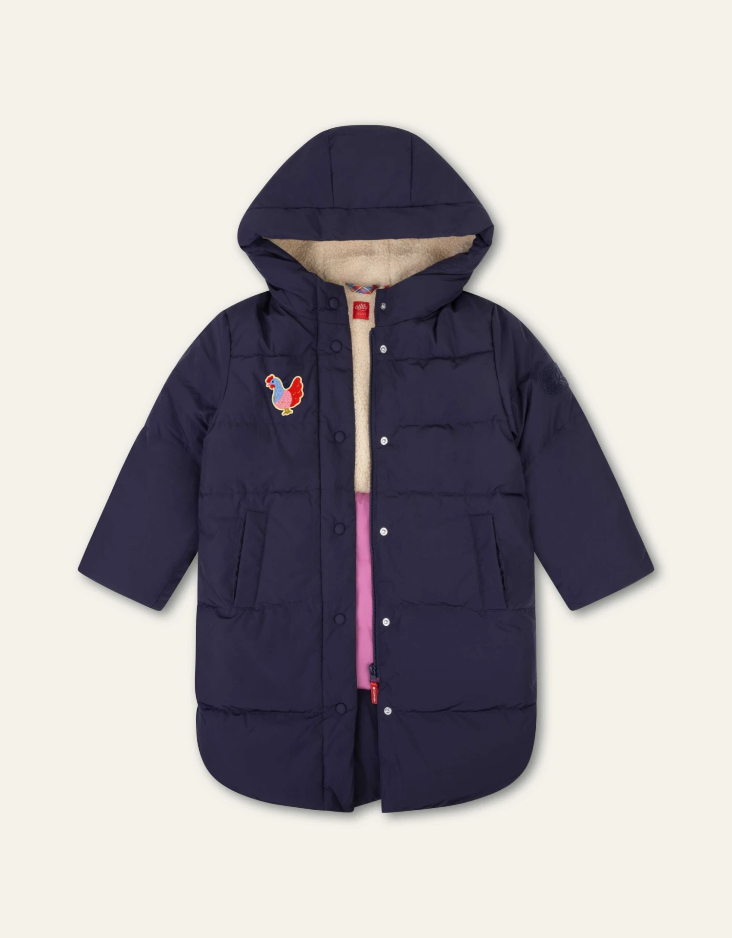 Zo verander je jouw jas in een unieke creatie die precies laat zien wie jij bent. Vandaag een vrolijke kip, morgen misschien een vis of een broccoli? De ruime steekzakken houden je handen warm, en de rechte pasvorm zorgt voor ultiem comfort