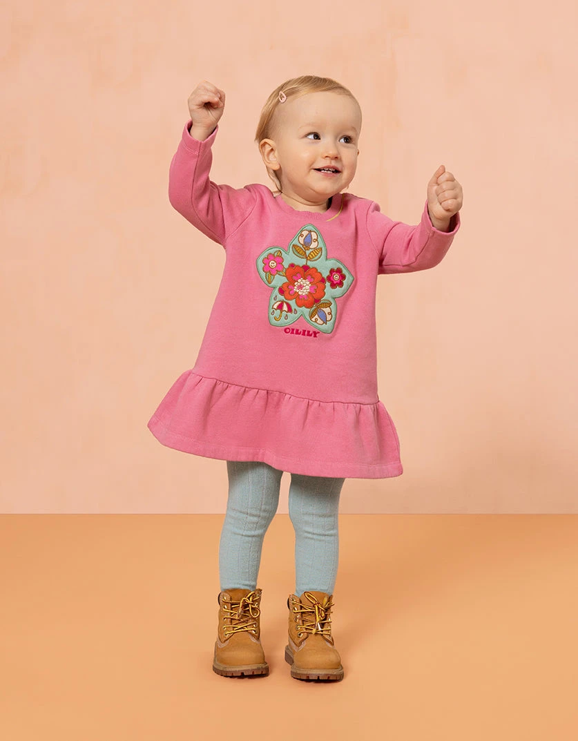 Zacht katoenen jurkje met een speelse terry towel artwork op je buik. Met vrolijke plooien en een heerlijke comfortabele fit voor veel speelplezier.