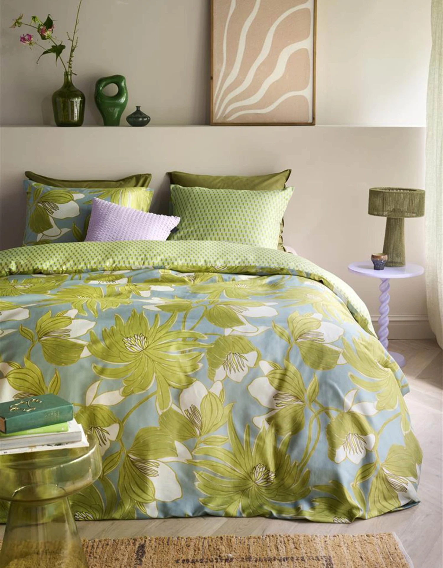 Vier de lente met het trendy dekbedovertrek Melodi van Oilily. De opvallende print van grote groene bloemen op een blauwe achtergrond springen direct in het oog. Draai het dekbedovertrek om en laat je verrassen door een vrolijke, grafische print. Welke kant leg jij bovenop?