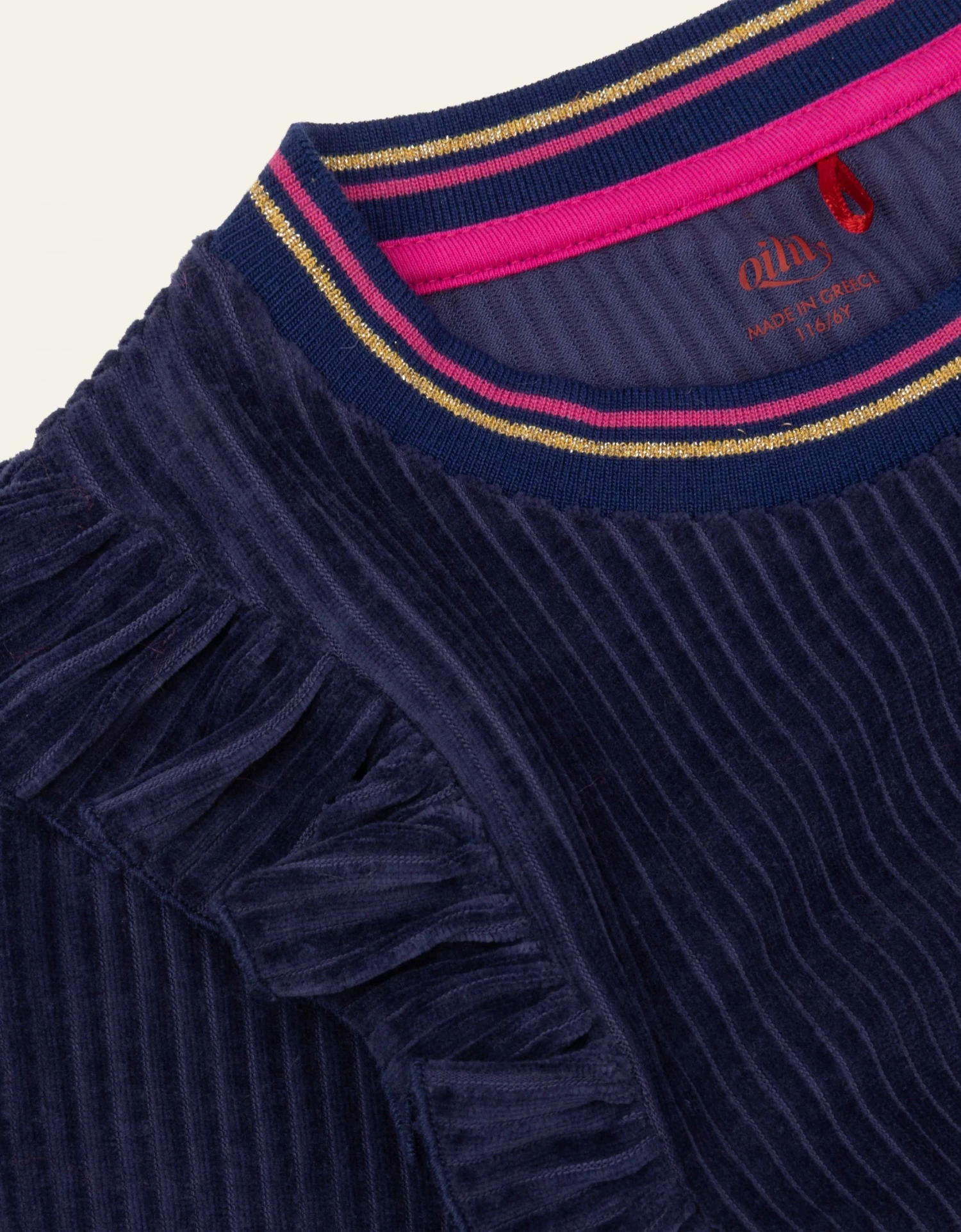 Zacht velours van organisch katoen is de basis van dit lieve jurkje. Het jurkje is makkelijk te dragen en heeft veel zoete, speelse details zoals de leuke ruches en het logo koord rond je middel.