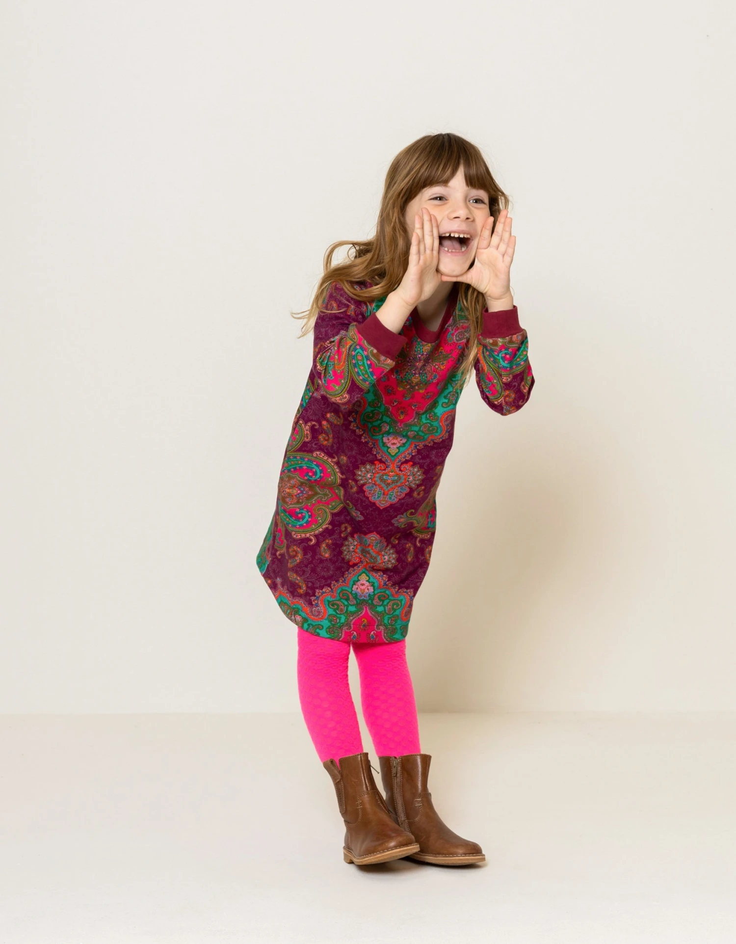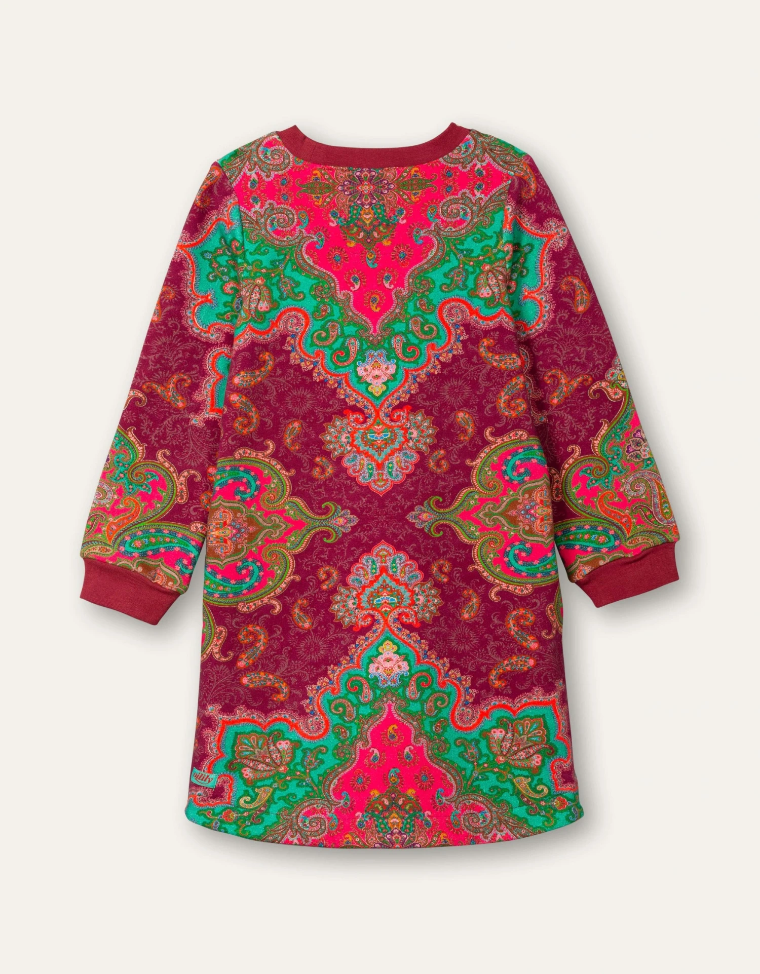 We vroegen Mr Paisley om een unieke paisley print voor ons te tekenen, die hebben we vervolgens geprint op deze sweatjurk. De warme dieprode kleur komt terug in de crewneck en manchetten. In de zij vind je kleine zakjes voor je belangrijke schatvondsten. – Organisch katoen met stretch – Regular fit – Unieke paisley