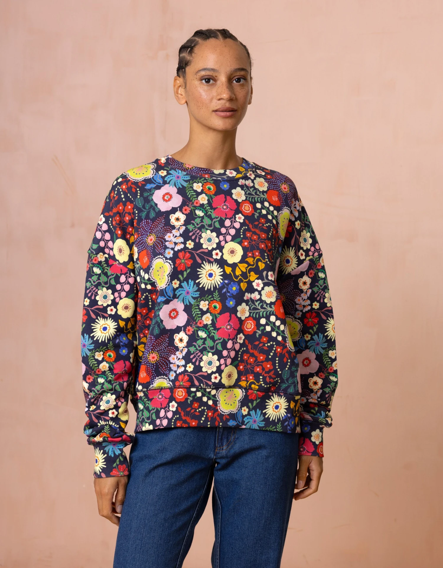 Oversized trui in ons Tide Spirits dessin ontworpen door kunstenaar Nathalie Lété waarbij ze een ode aan traditioneel vakmanschap en folkloristische schoonheid brengt.