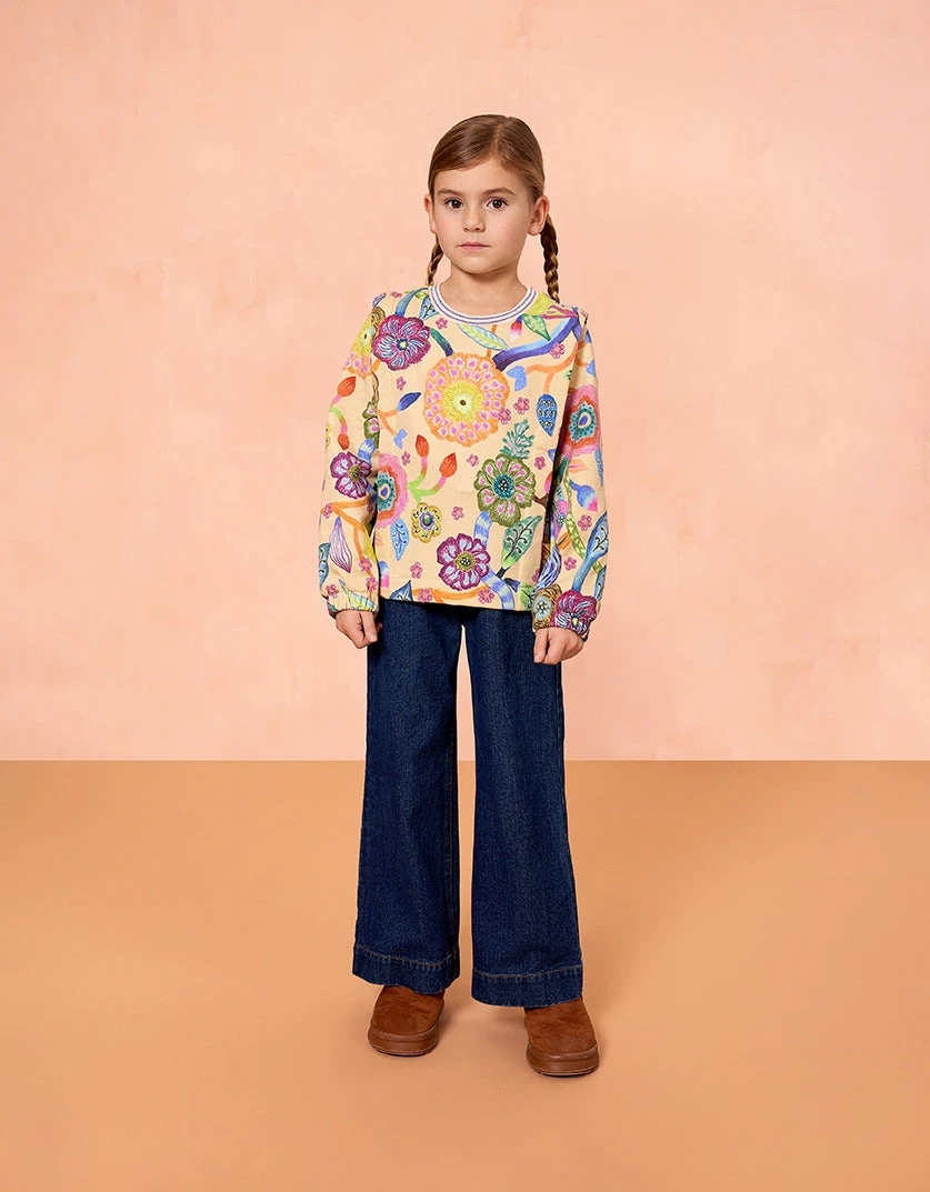 Fijne trui met een elastische boord en van heerlijk zacht katoen in de print Tern Tides. Dit dessin van organische vormen werd getekend met gekleurde krijtjes.