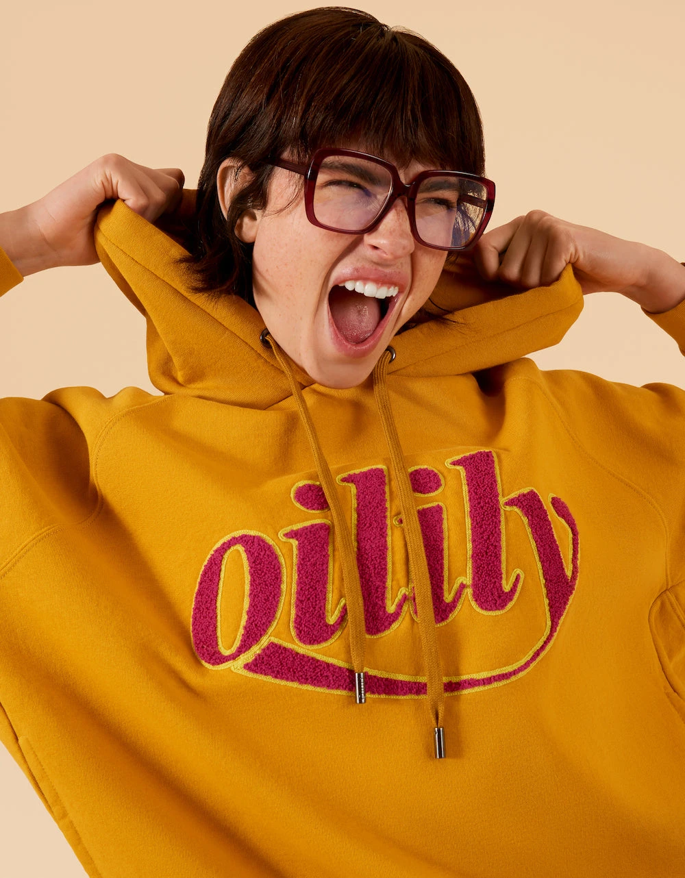 Heerlijke loose fit hoodie van biologisch katoen met zakken in de zij. De zachte kleur in combinatie met onze naam in 3D met terry towel maakt dit een vrolijk item voor alledag.