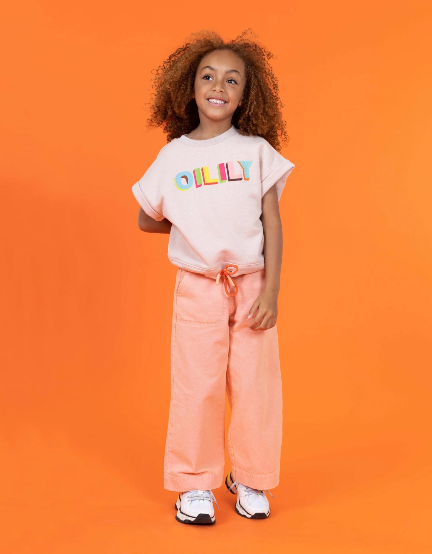 Trui met korte, wijde mouwen in poederroze met goud draad voor wat glans en een vrolijke print. Rijg het logo koordje aan of houd het lekker losjes. – Organisch katoen met polyester en lurex – Relaxed fit – Gemaakt in Griekenland