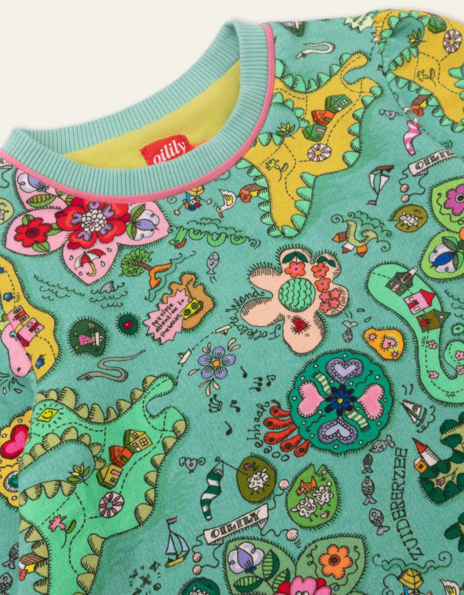 Heerlijke zacht katoenen trui waarop zoveel te ontdekken valt met onze print Schokland Islands. Je spot op dit vergane eiland van de Zuiderzee bloemen, schapen, boten en ook monster Nessie uit Schotland.