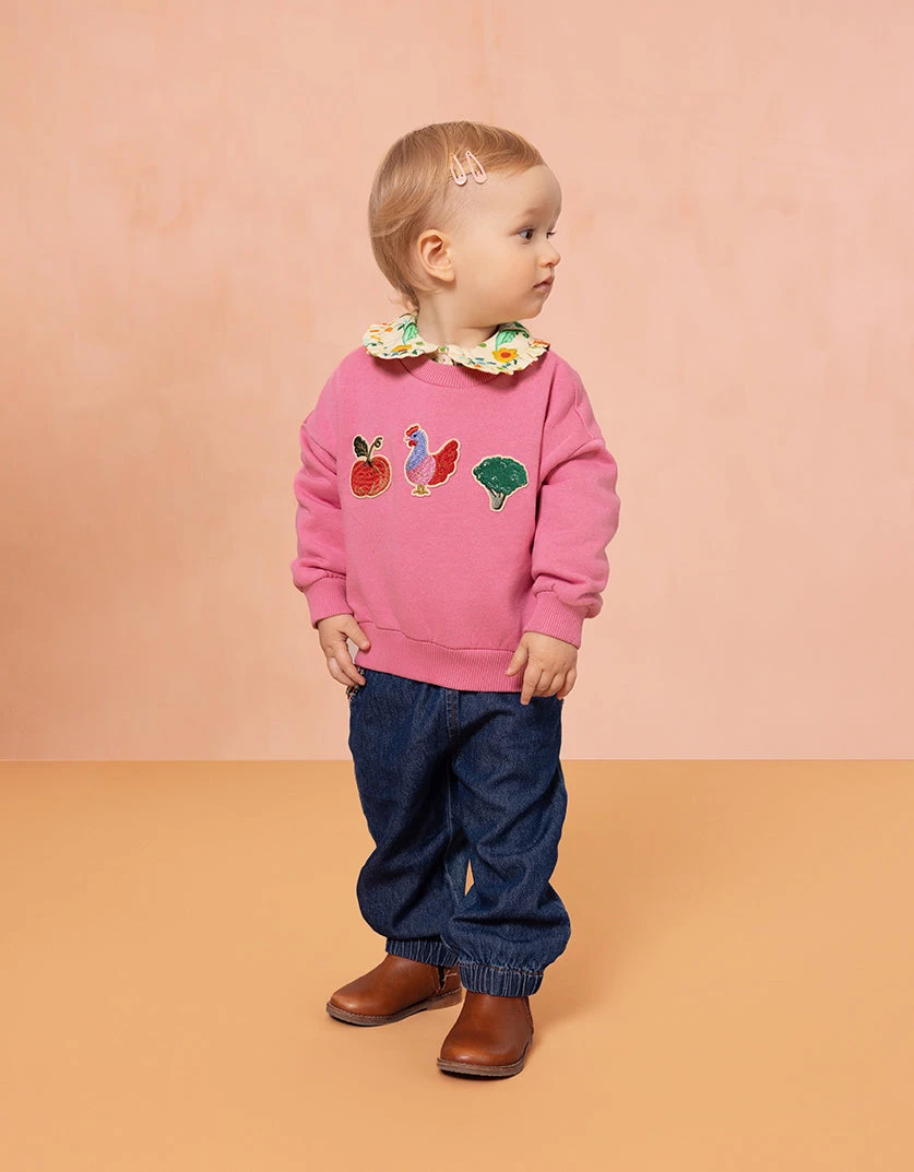 Geborduurd op deze zachte trui vind je de speeltjes uit de Surprise Balls print gemaakt door kunstenares Nathalie Lété. En ook leuk om te weten: de finishing touches zijn speciaal met de hand toegevoegd.