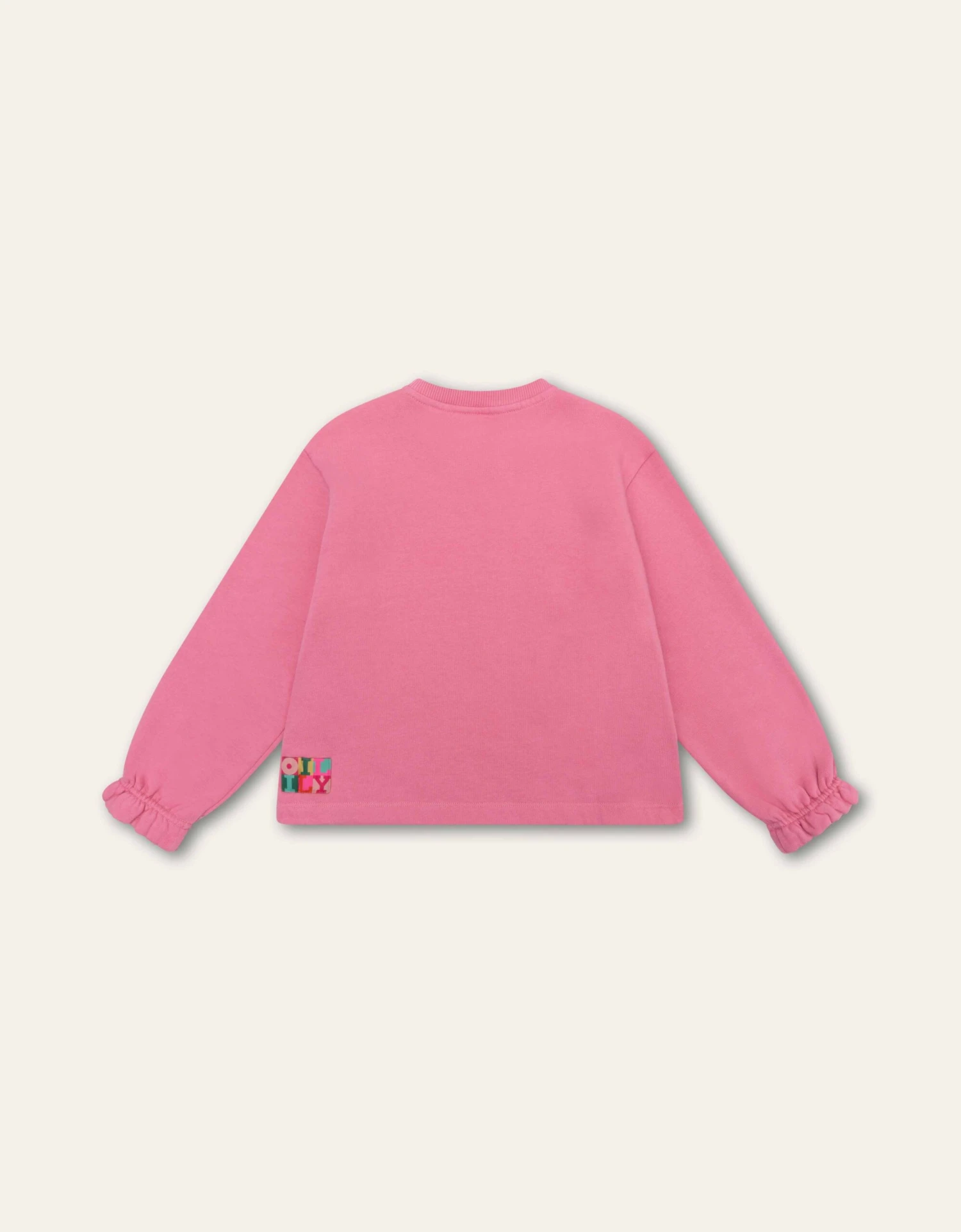 Oilily is een blij merk en dat mag iedereen zien met je nieuwe lievelingstrui gemaakt van biokatoen. De mouwen hebben gezellige ruches langs de manchetten.