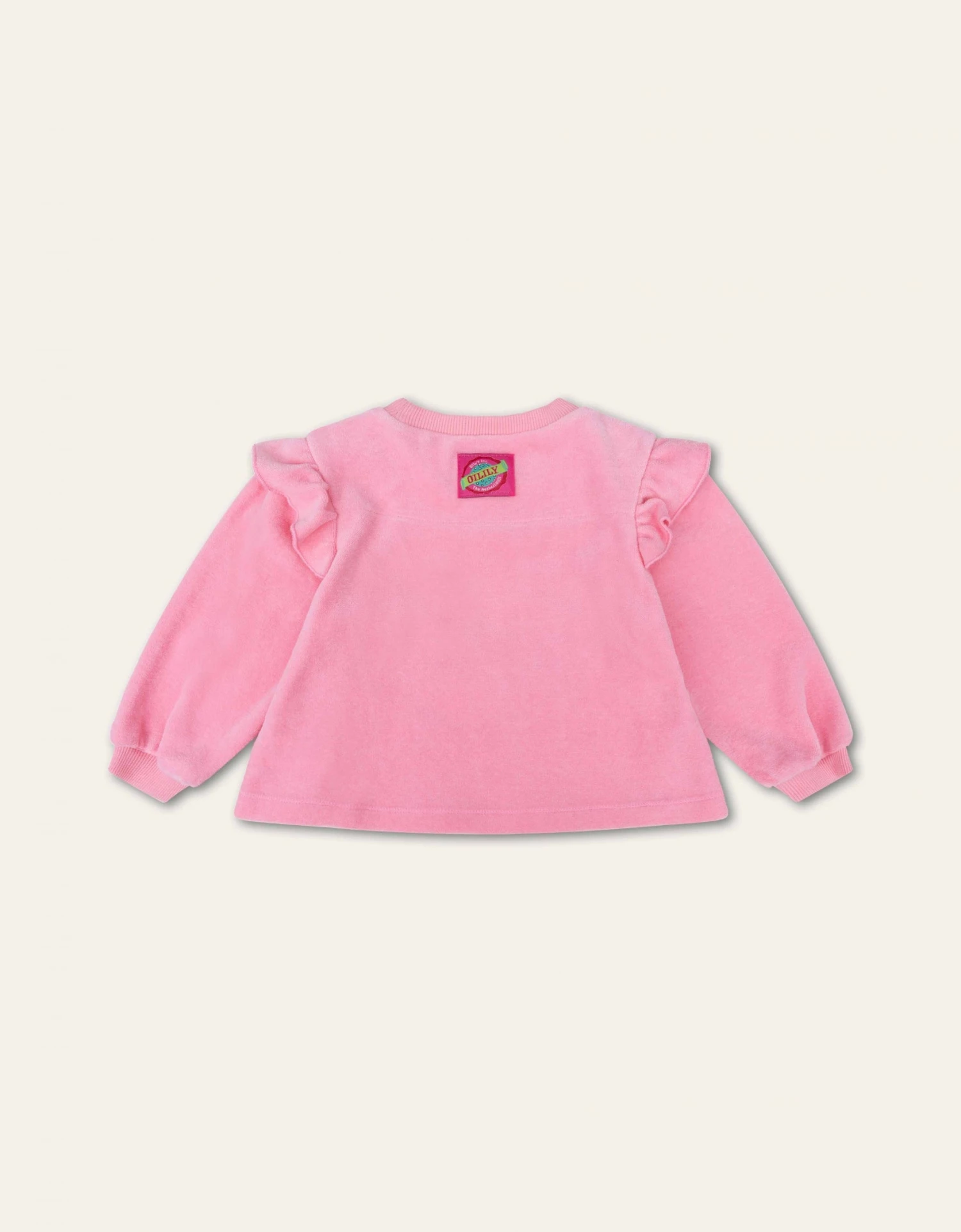 Lekker rennen, spelen of gewoon luieren. Doe net als deze luiaard, die kan er ook wat van. Op je trui hangt ‘ie er goed bij en jij ziet er zacht en cute uit. Dat komt door het velours en de ruches van je trui – en door jouw glimlach natuurlijk!
