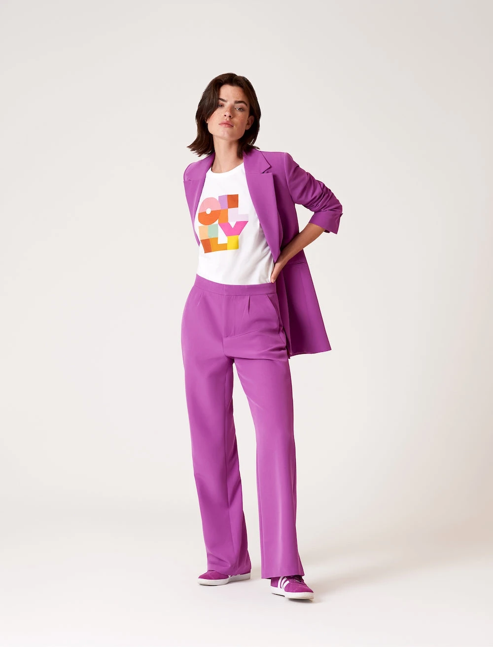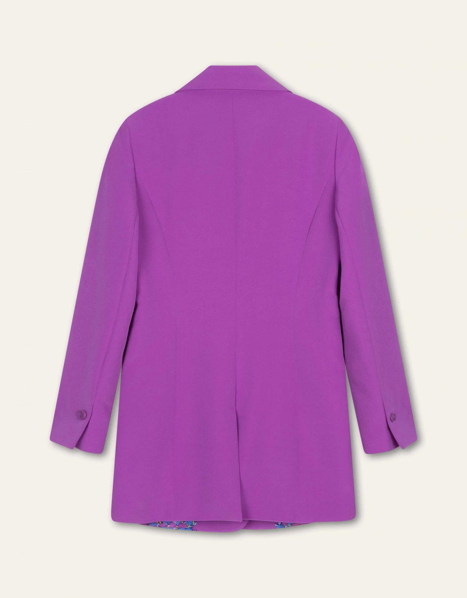 Dit eigentijdse colbert jasje heeft een ruime voorpand voor casual flair en sluit met een enkel knoop. De sprekende kleur zorgt voor een sterk fashion statement. De voering is prachtig diep donkerblauw met ons vrolijke, handgetekende Floral Ditsy dessin.