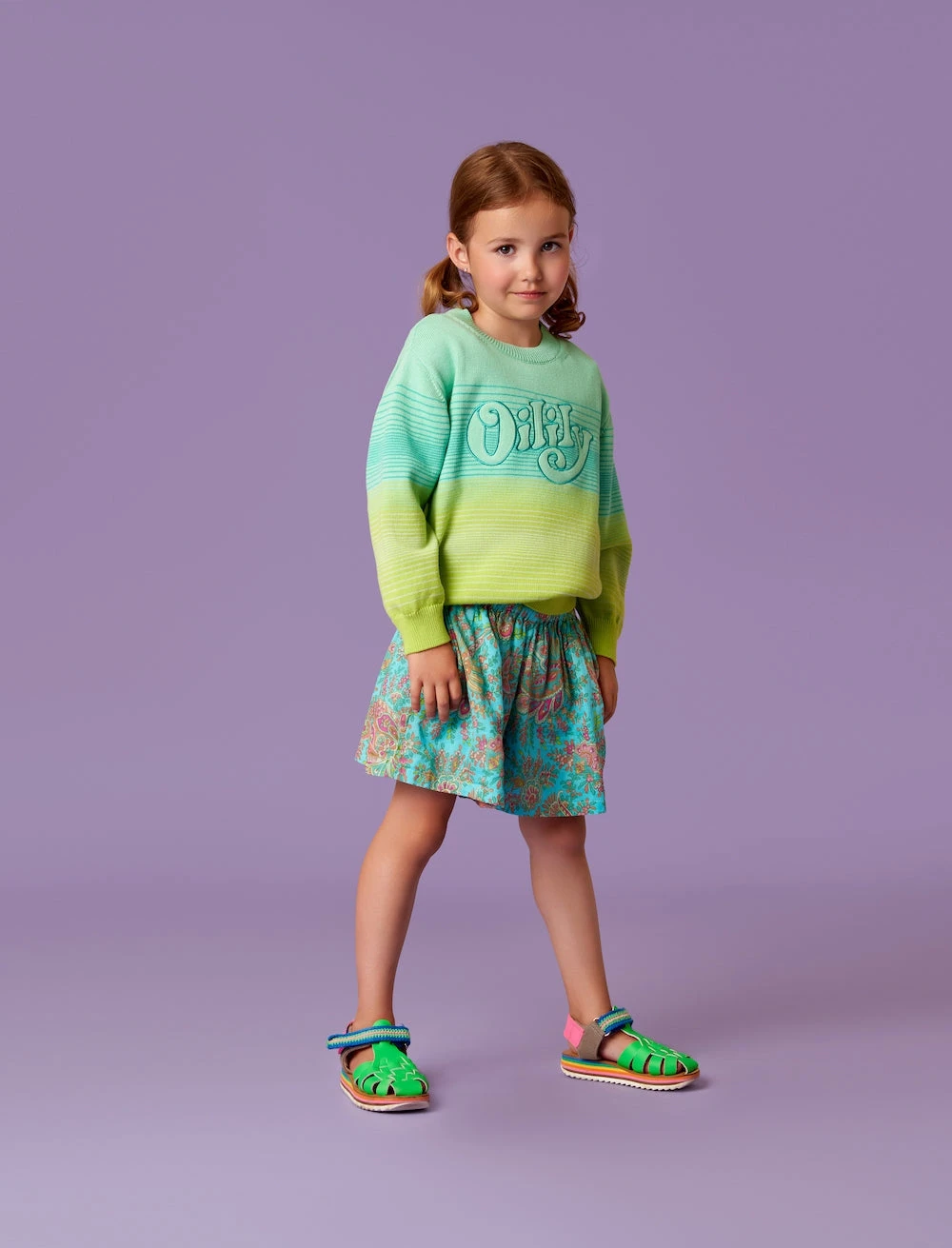 Met een vrolijk kleurverloop en verschillende streepjes is deze trui een echt gezellig item voor de lente. Het Oilily logo is er met veel zorg op gepatcht.