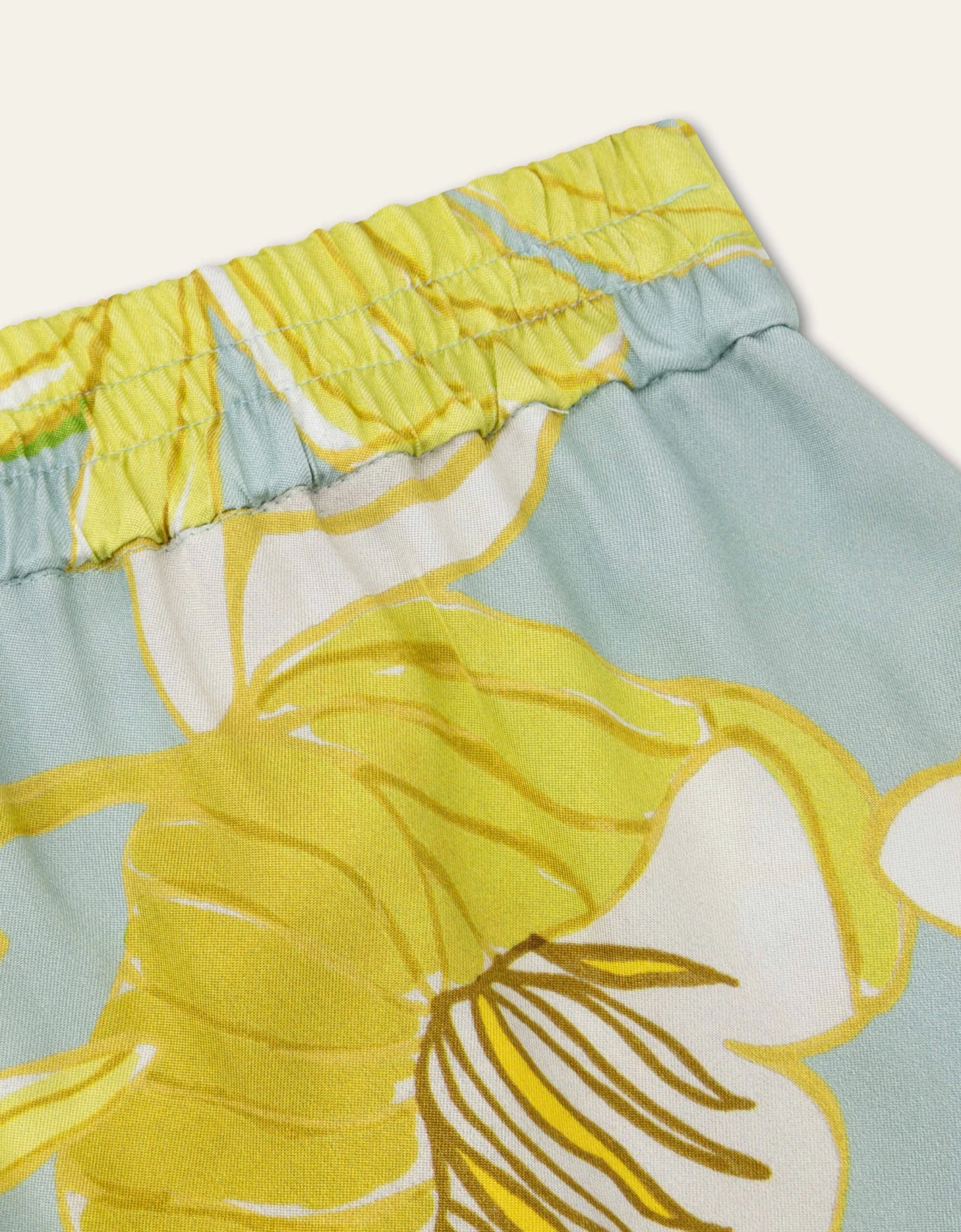Een heerlijke broek van viscose en met de weelderige vormen van dessin Carnival Cove. Het staat mooi op de lange, wijde fit van deze broek dat elastisch is aan de achterkant. De twee plooien aan de voorkant maken het af.