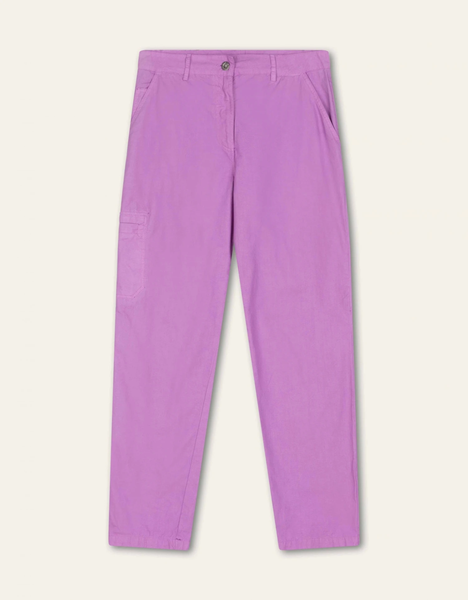 Crisp poplin broek van Italiaans katoen met platte zakken aan de zijkant en een licht getaperde fit. Voor dagen dat de zon nog aan het twijfelen is en jij fashionable op pad wilt.