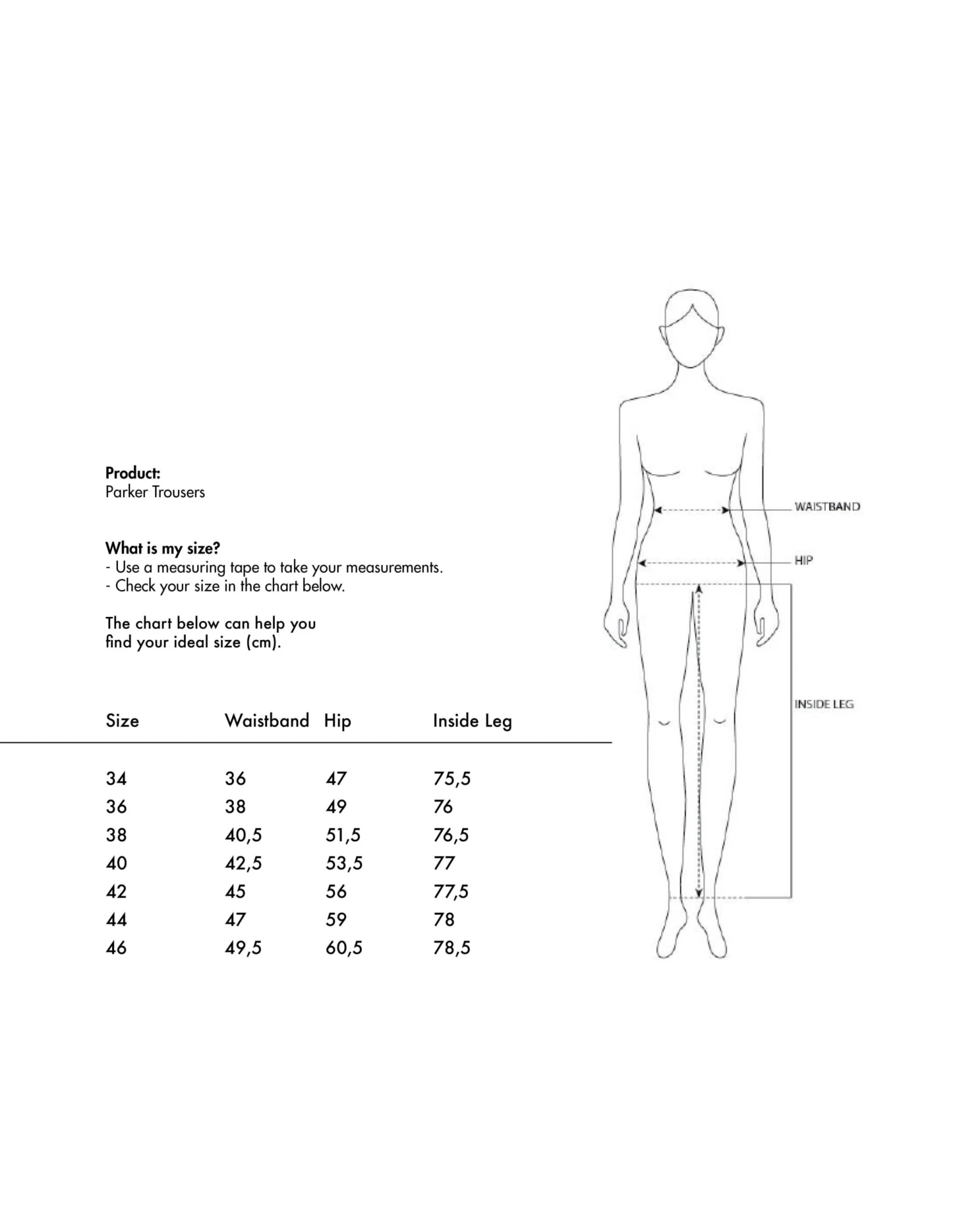 | Size | 32, 34, 36, 38, 40, 42, 44, 46 |