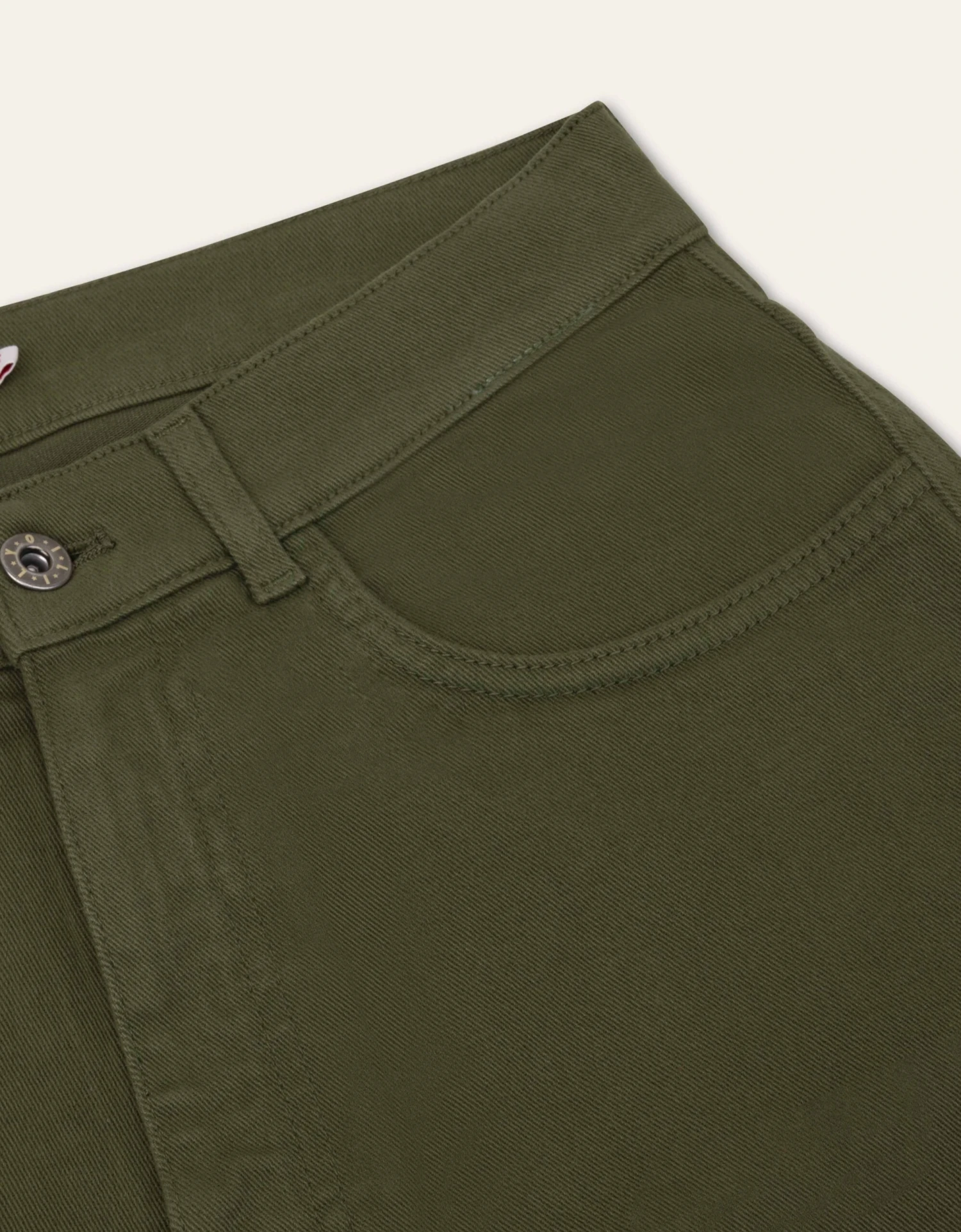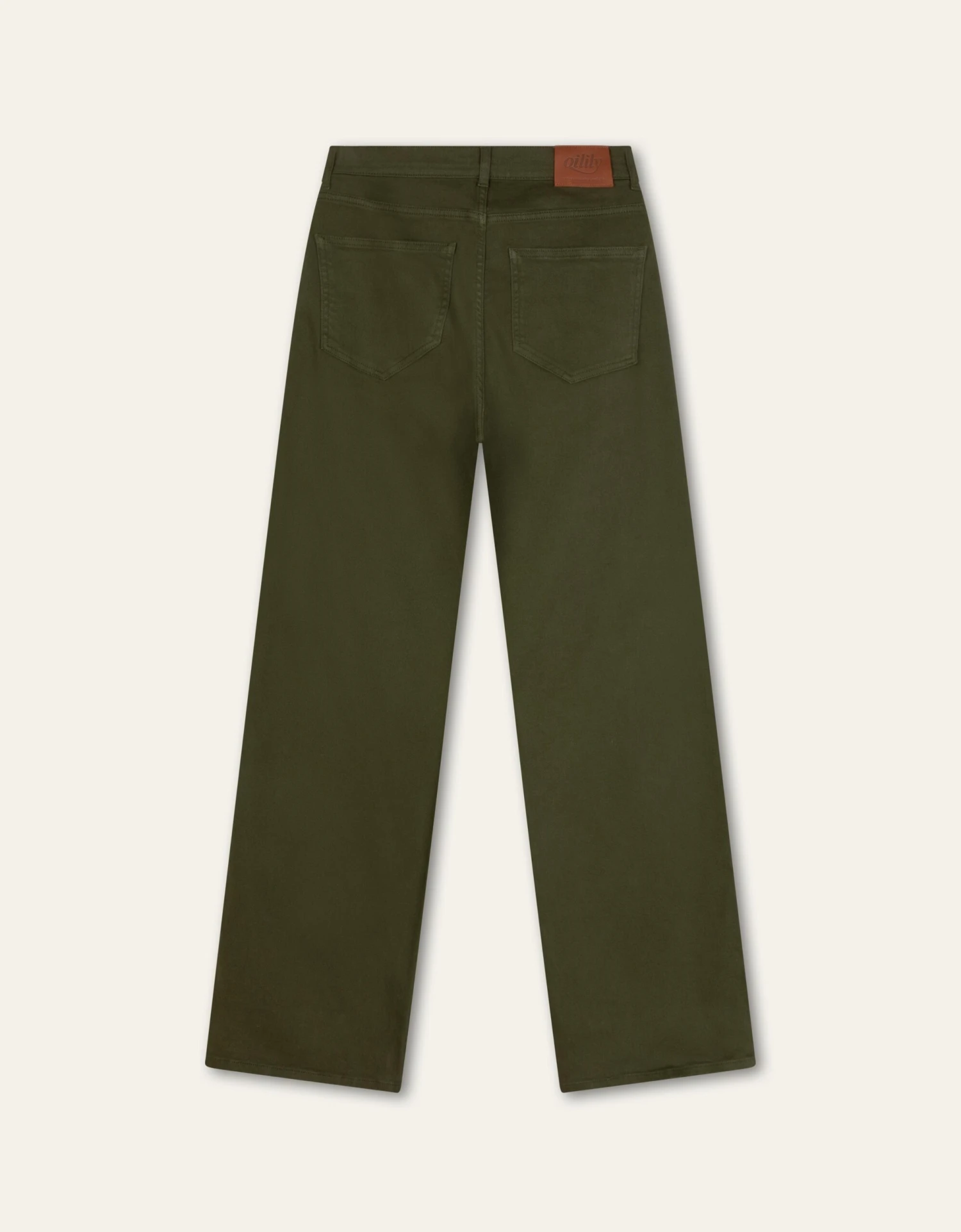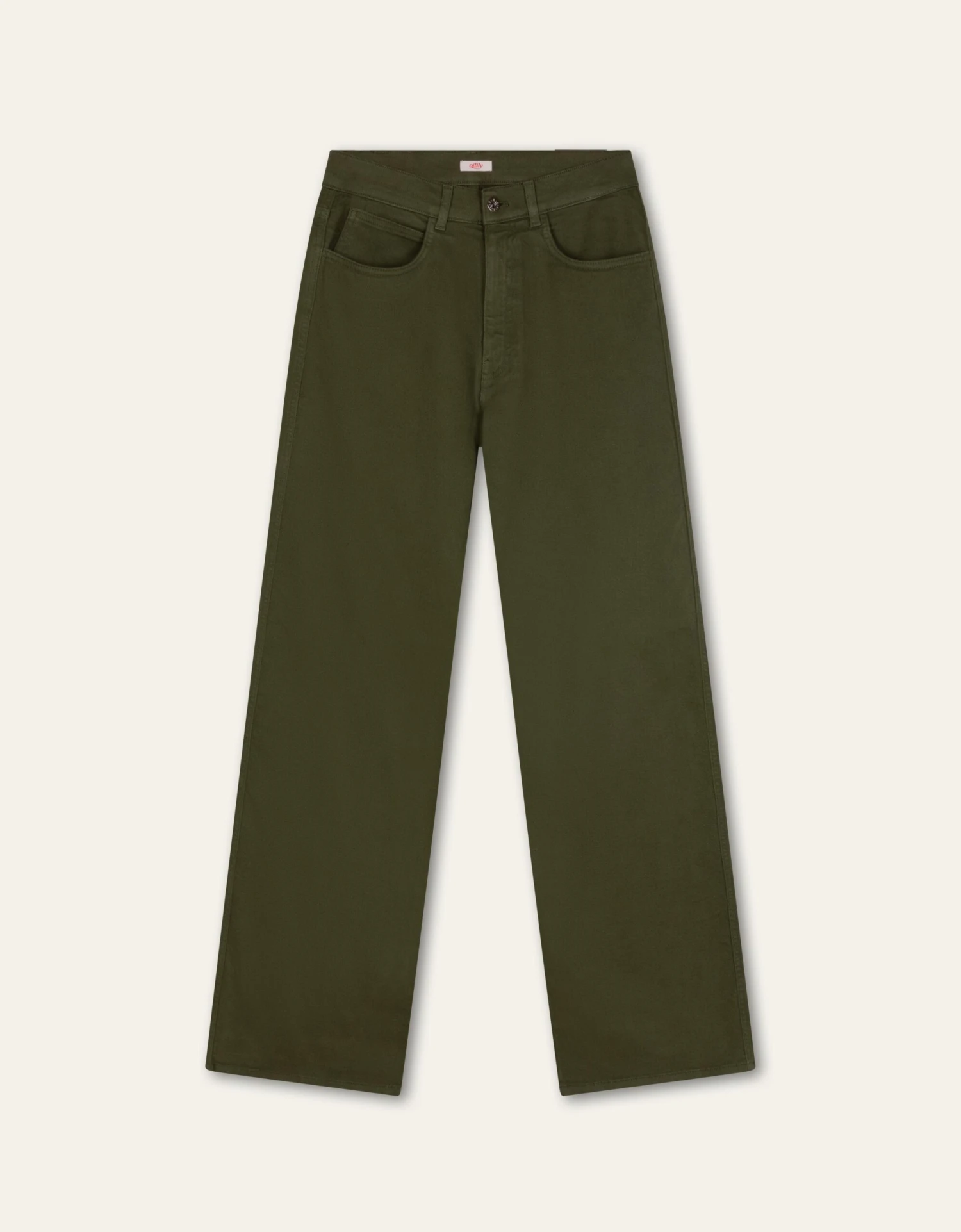 Dit is een 5-pocket denim broek met een kleine beetje stretch. De broek heeft een straight, wide leg en een easy fit.