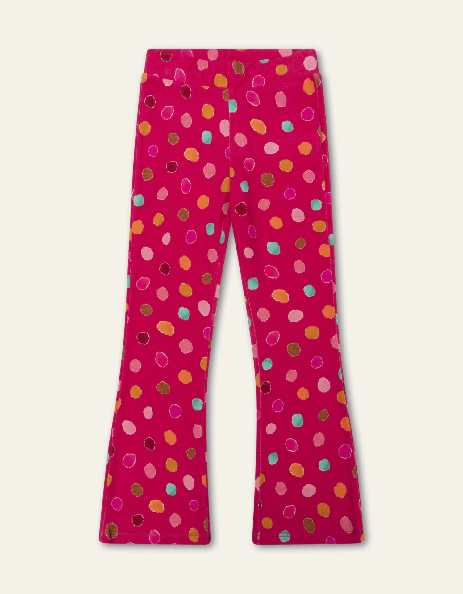 Tel alle stippen.. of zijn het misschien eitjes gelegd door Wingsy de kip? Hoe dan ook, ze zijn met de hand gemaakt door gekleurd papier te scheuren. En zo staat print Nessy Dots hartstikke gezellig op deze flared legging.