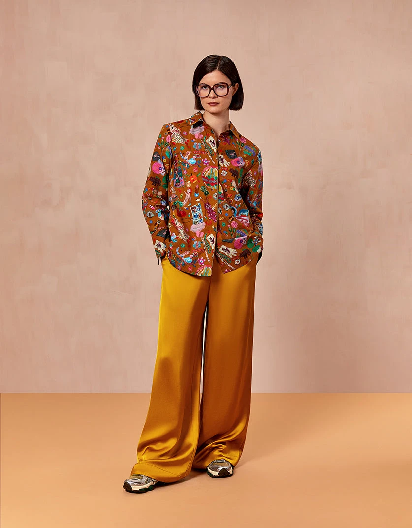Een broek van stevig viscose met een elastische taille met aansluitceintuur. Speel met je silhouette en varieer de combinaties bij deze soepelvallende broek met steekzakken.