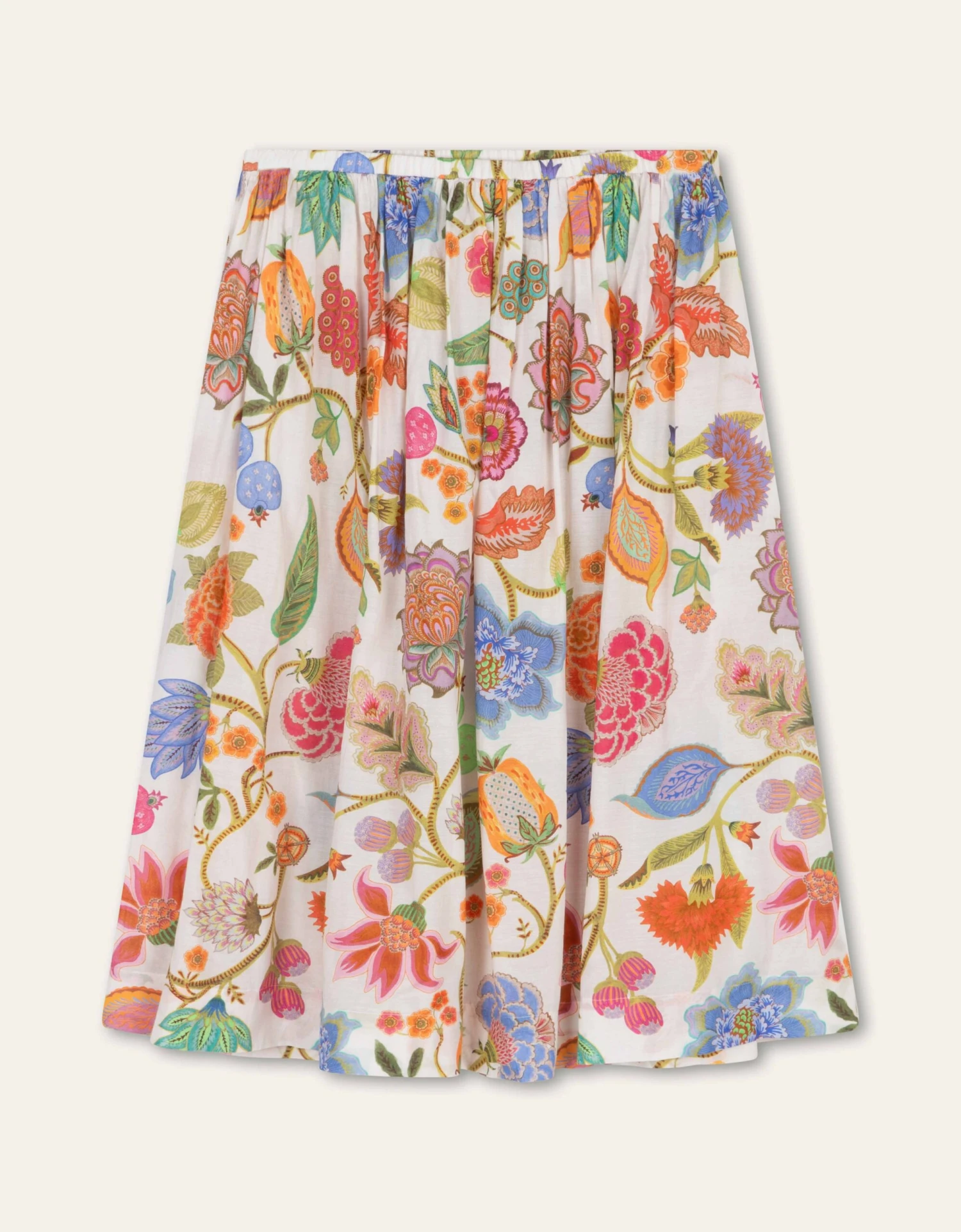 De warme gezelligheid van dessin Sassy Sits in frisse kleuren maken van deze rok een voorjaarsfavoriet. Het is een midi rok dat op ongeveer enkellengte valt, het heeft een elastische taille en subtiele zakken in de zij.