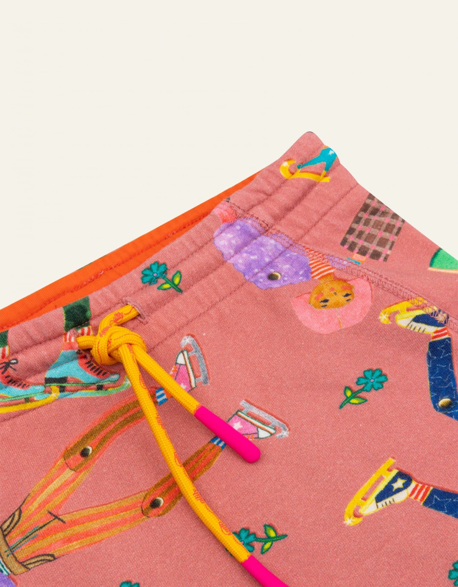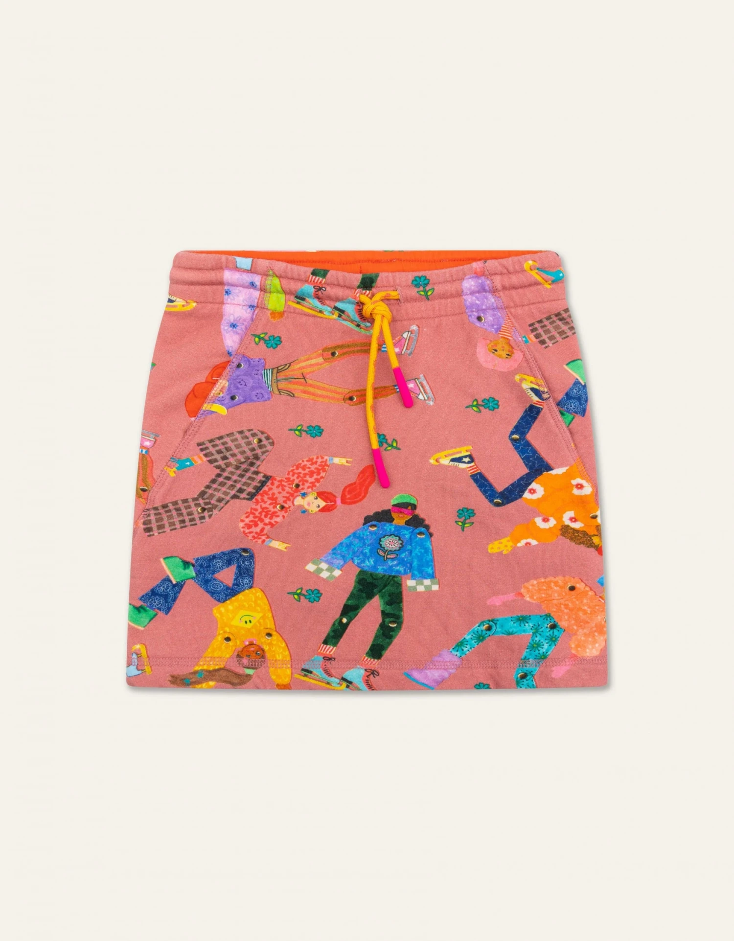 Kort rokje met drawstring dat gemaakt is van stoere sweatstof en met zakken in de zij. Van de Skatehop meiden op deze rok wordt je vanzelf vrolijk.
