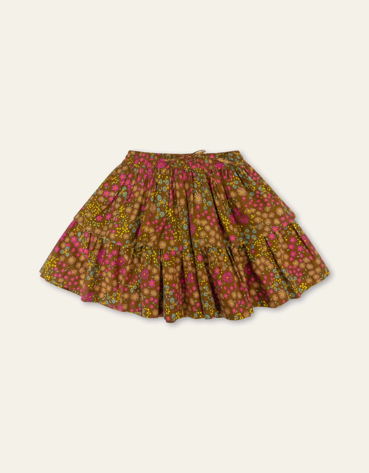 Lief tweelaags rokje met ons Laila dessin. Het bestaat uit allerlei kleine, fijne bloemen die samen deze print vormen. Het rokje heeft een elastische taille en cords.