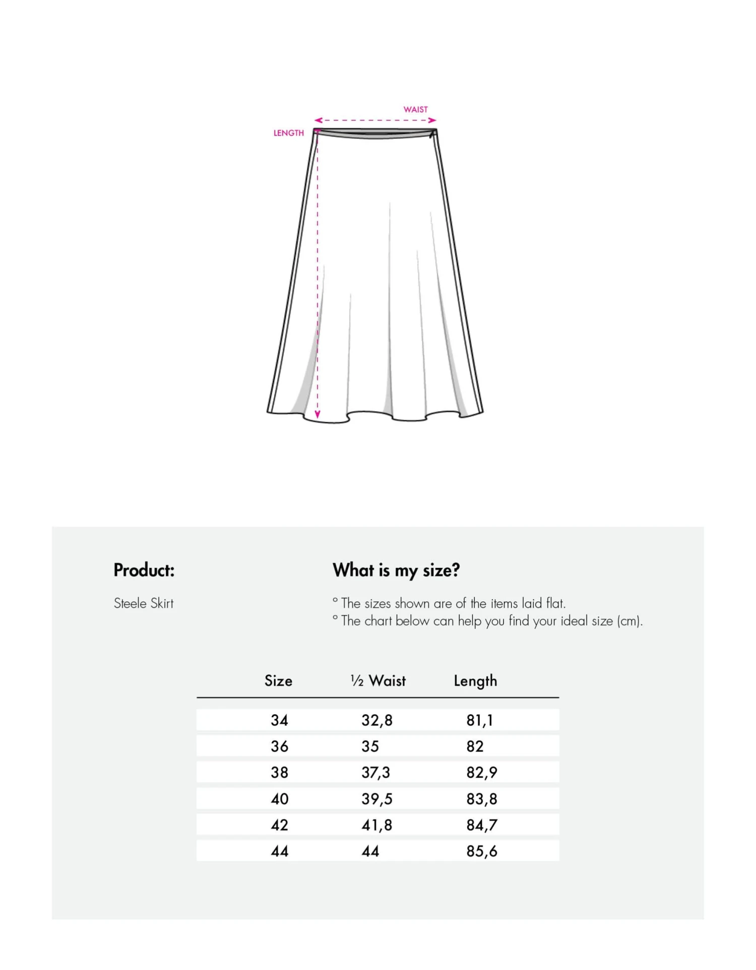 – Lengte bij maat 36 is 82 cm