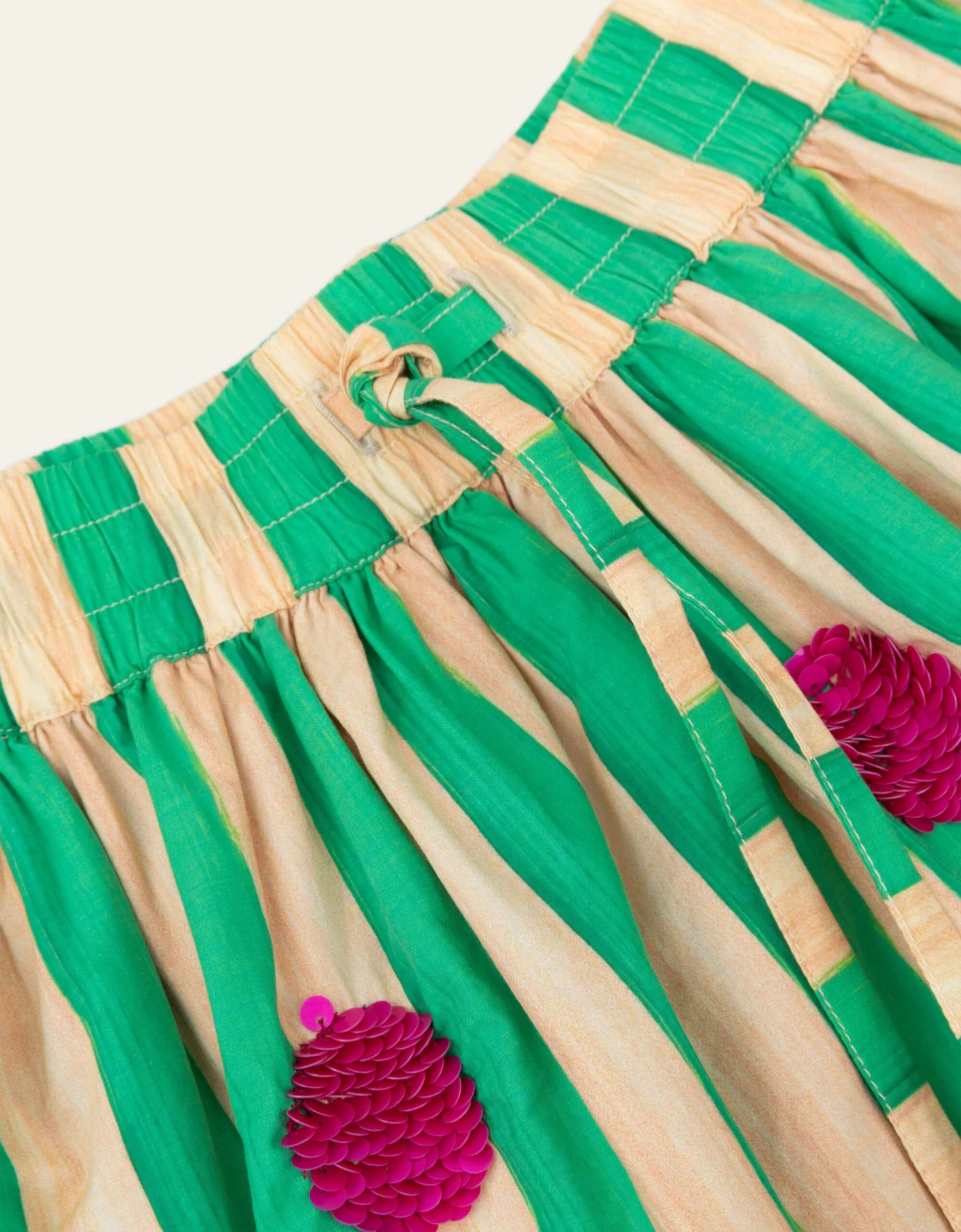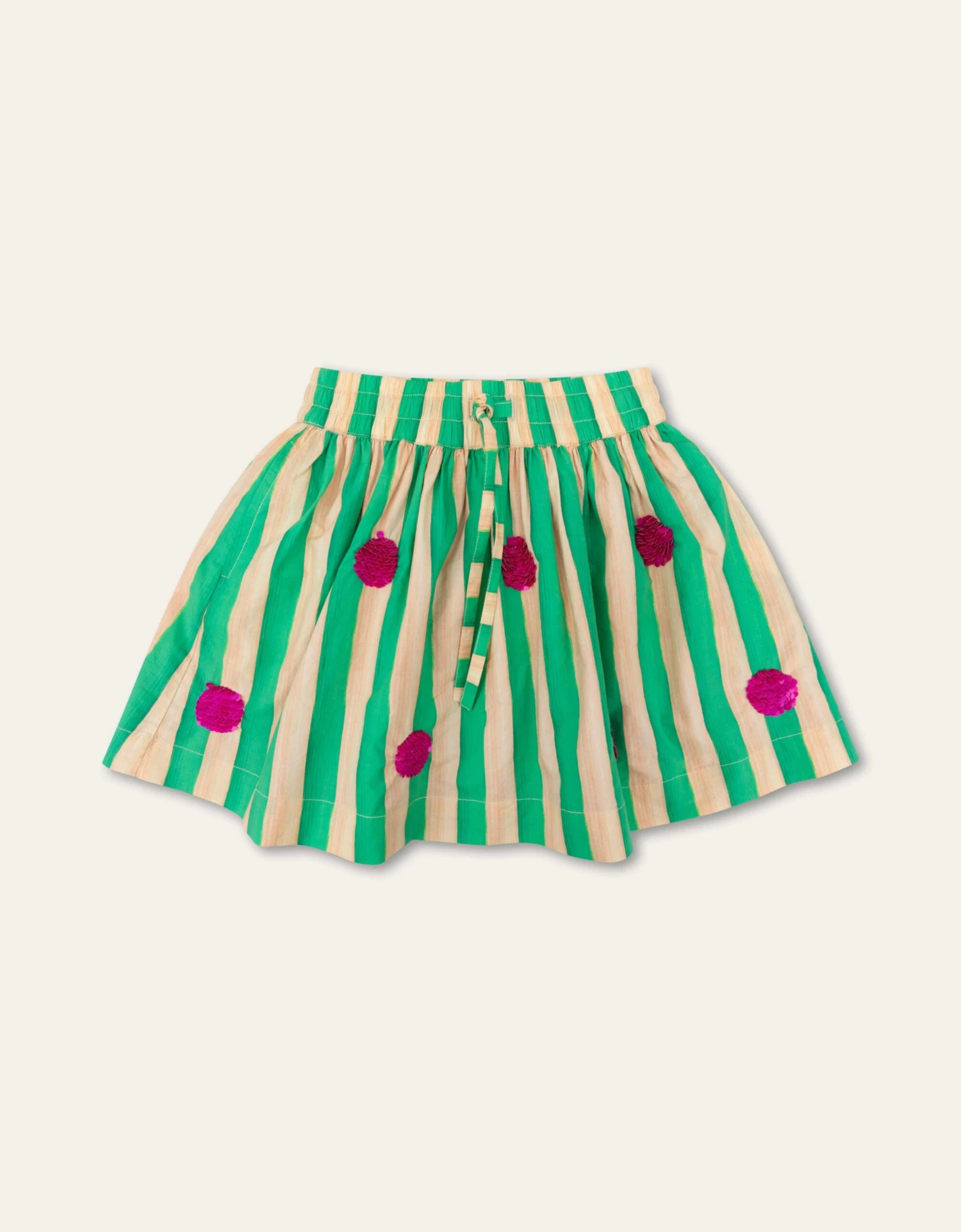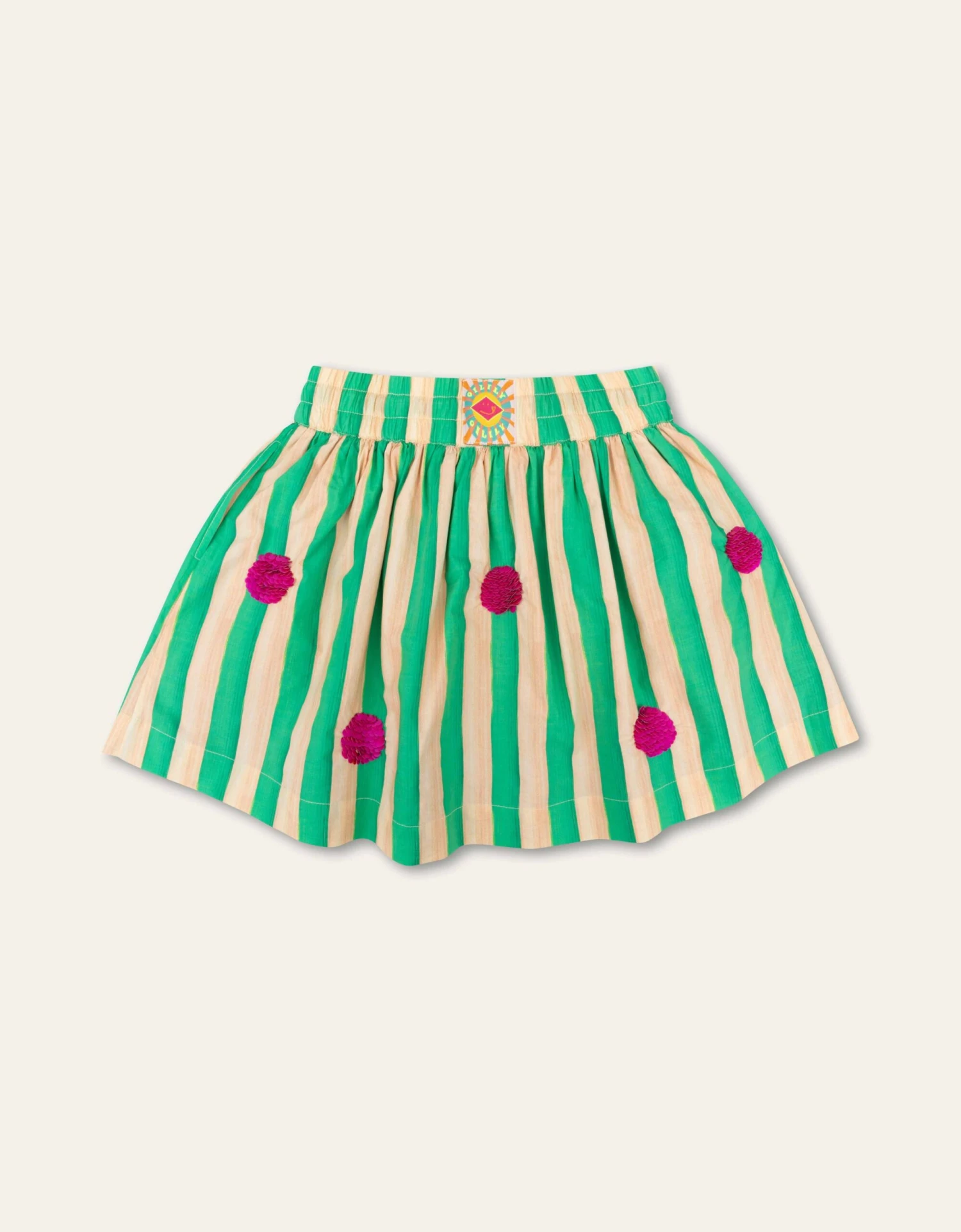 De mooie plooitjes, de stoere strepen en de speelse dots maken van dit rokje een genot om naar te kijken.