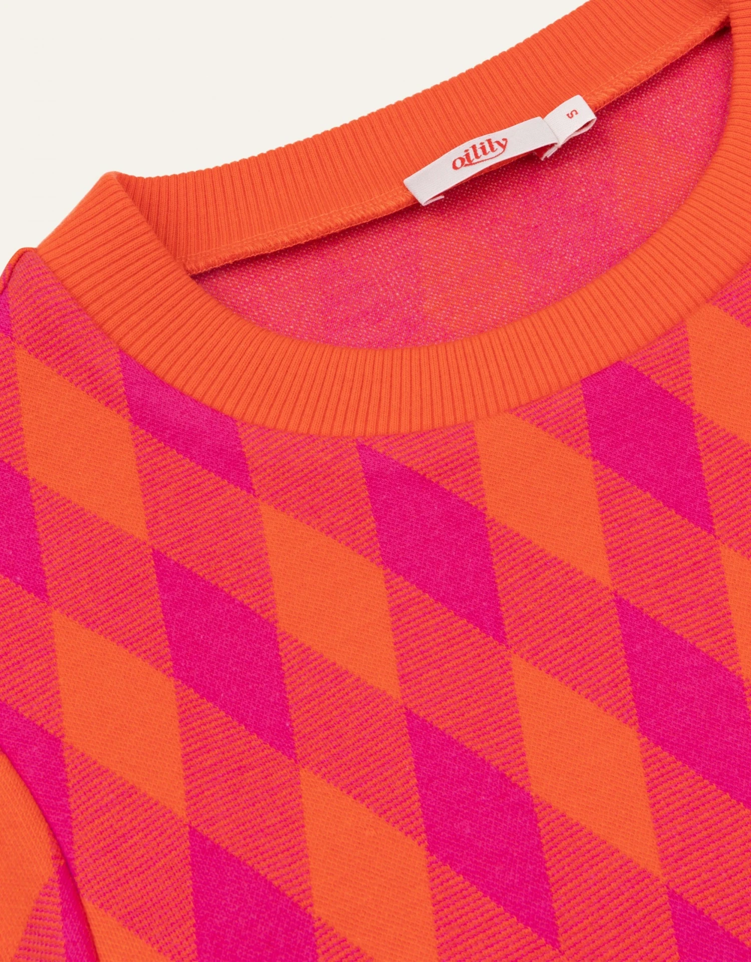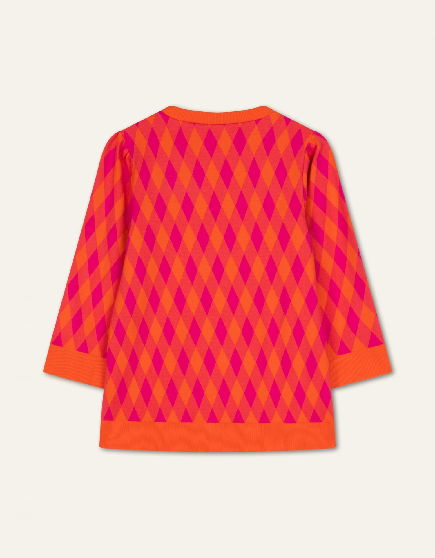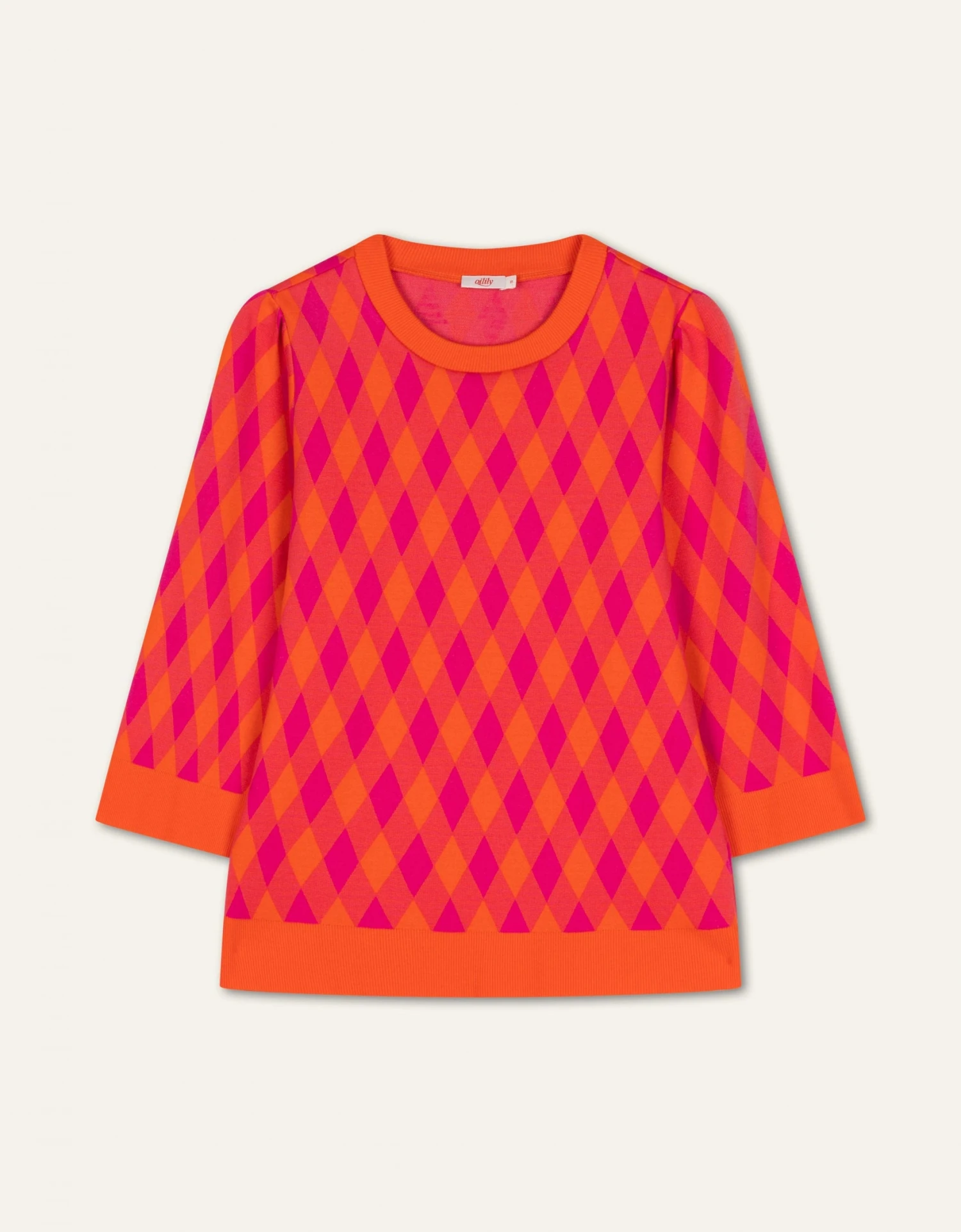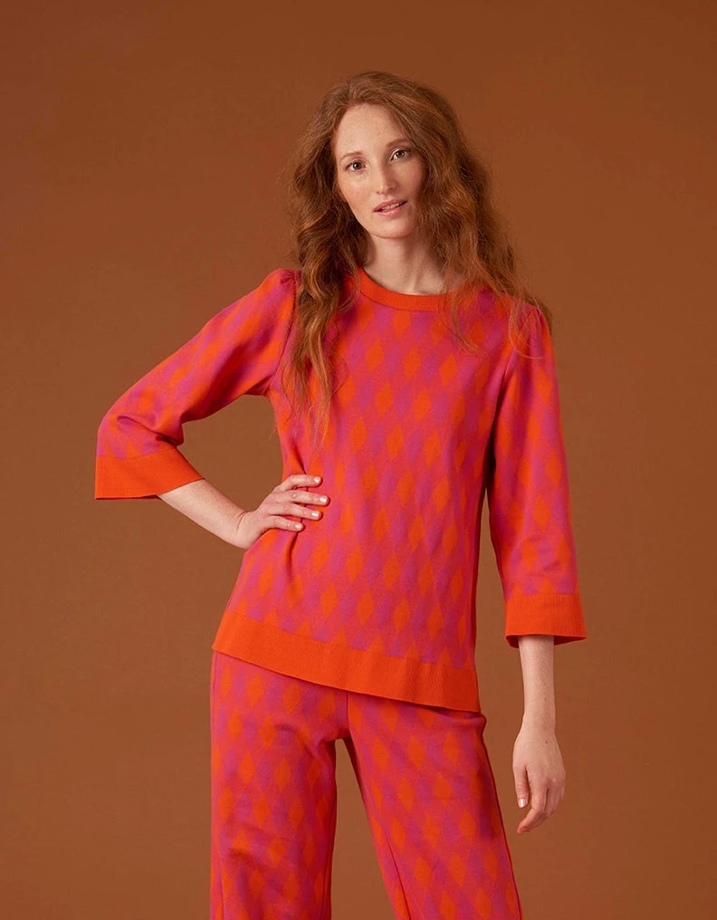 We zijn gek op knits en deze jacquard gebreide trui is een plaatje. De boorden lopen mooi door in het lijf en de losvallende ⅞ mouwen hebben subtiele plooien, waardoor deze jersey-knit perfect elegantie met comfort combineert.