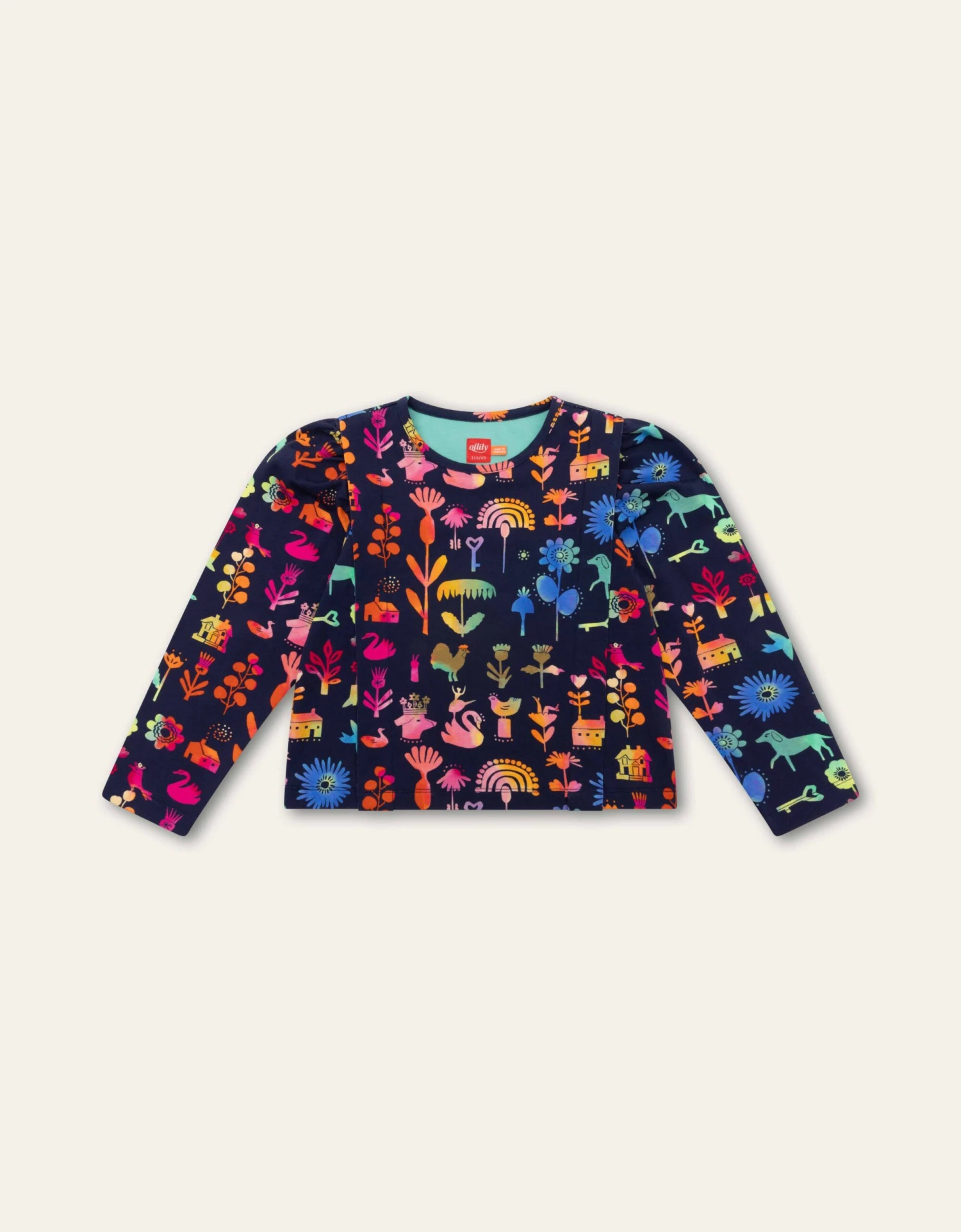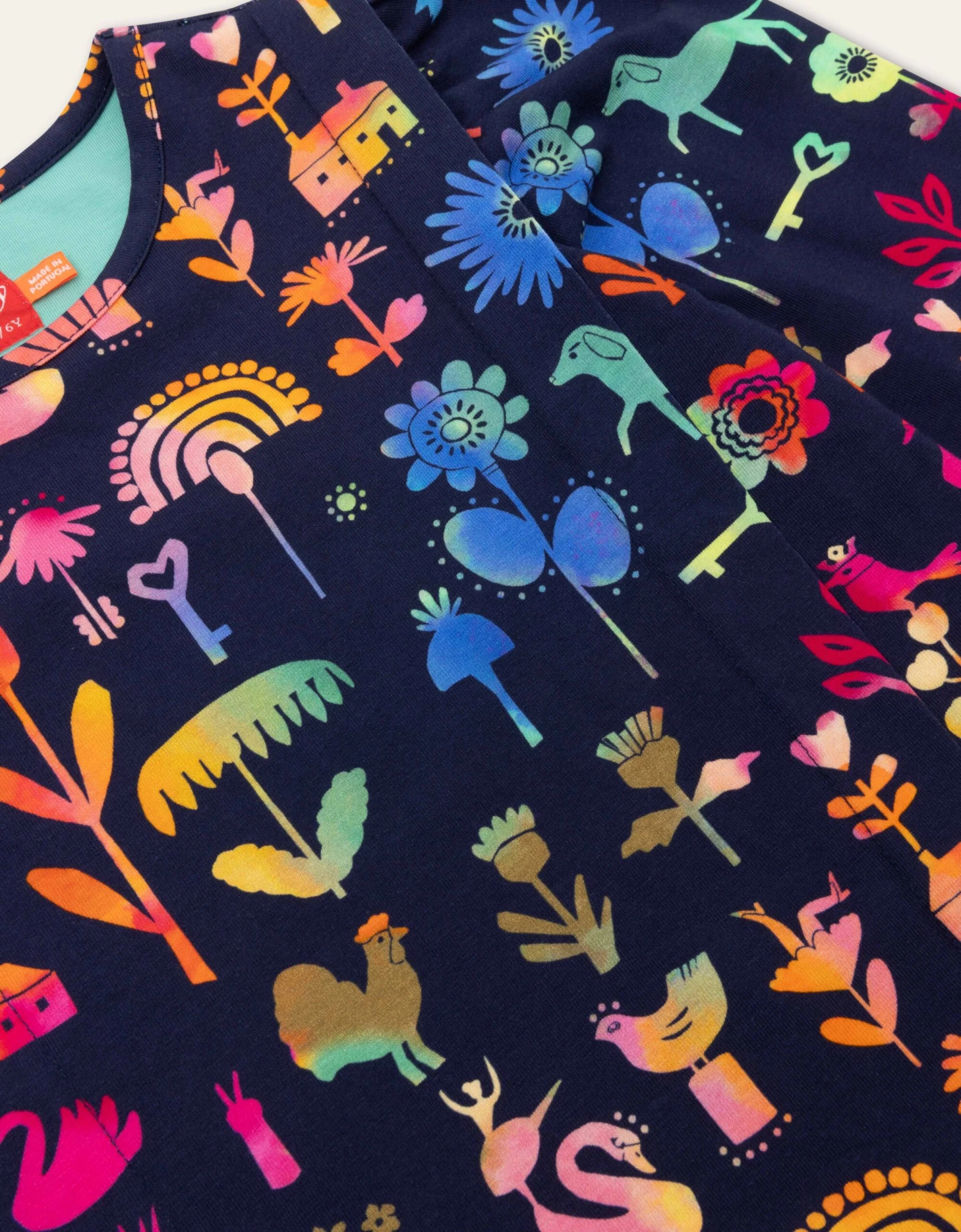 De tekeningen op dit shirt zijn allemaal met de hand gemaakt met ecoline en het zijn allerlei vrolijke dieren van print Farm Life.