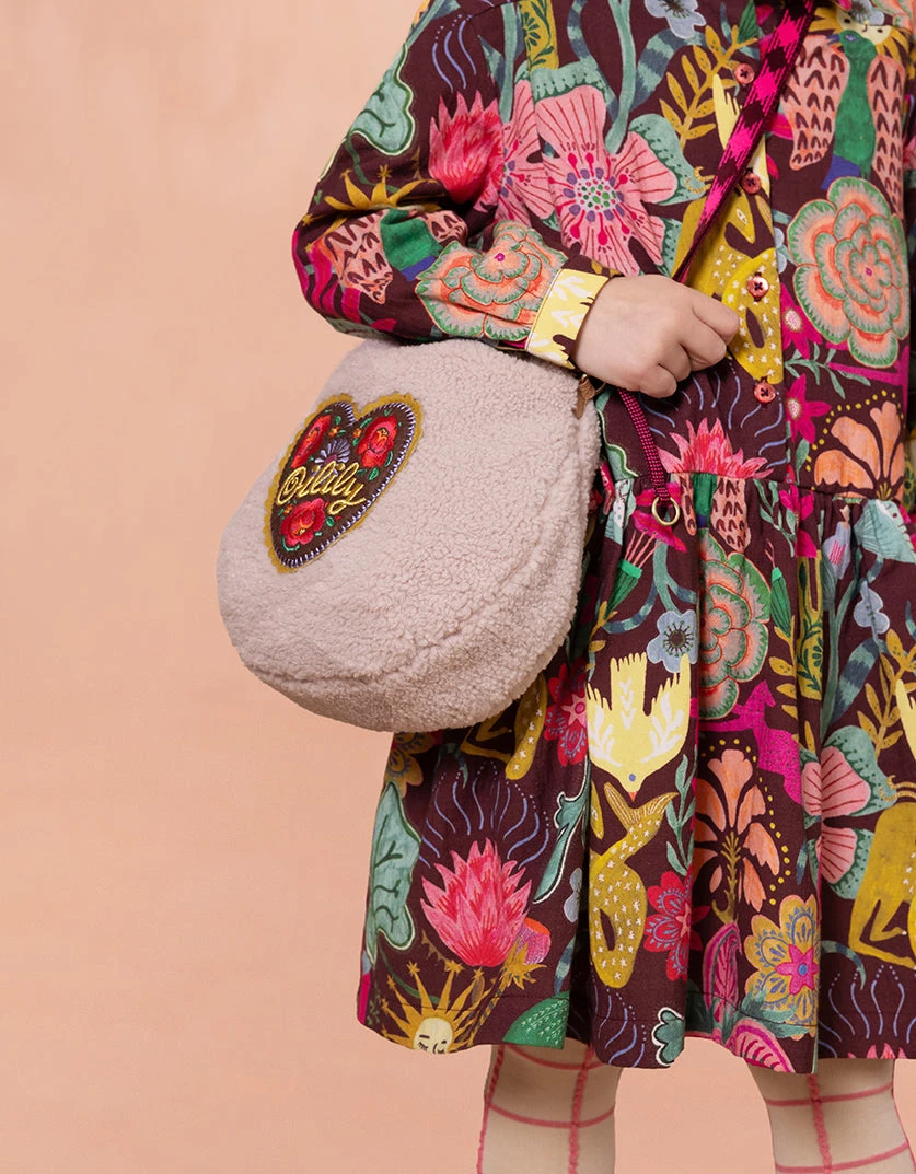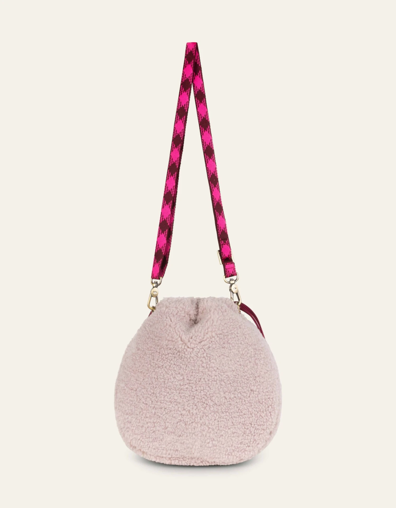 Het zachtste schoudertasje ooit! Trek hem gemakkelijk open en dicht met de koordjes aan de zijkant!