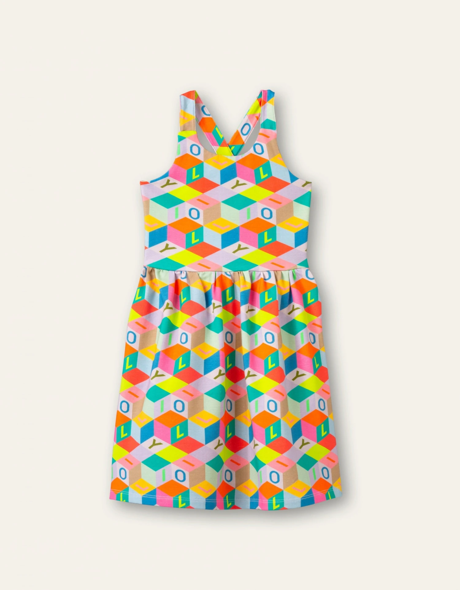 Sportieve en girly jurk – het perfecte item voor die hete zomerse dagen wanneer ijsjes eten het is enige is wat je wilt doen. Deze zachte bio-katoenen jurk met speels rugdetail is heerlijk te dragen op zonnige dagen.