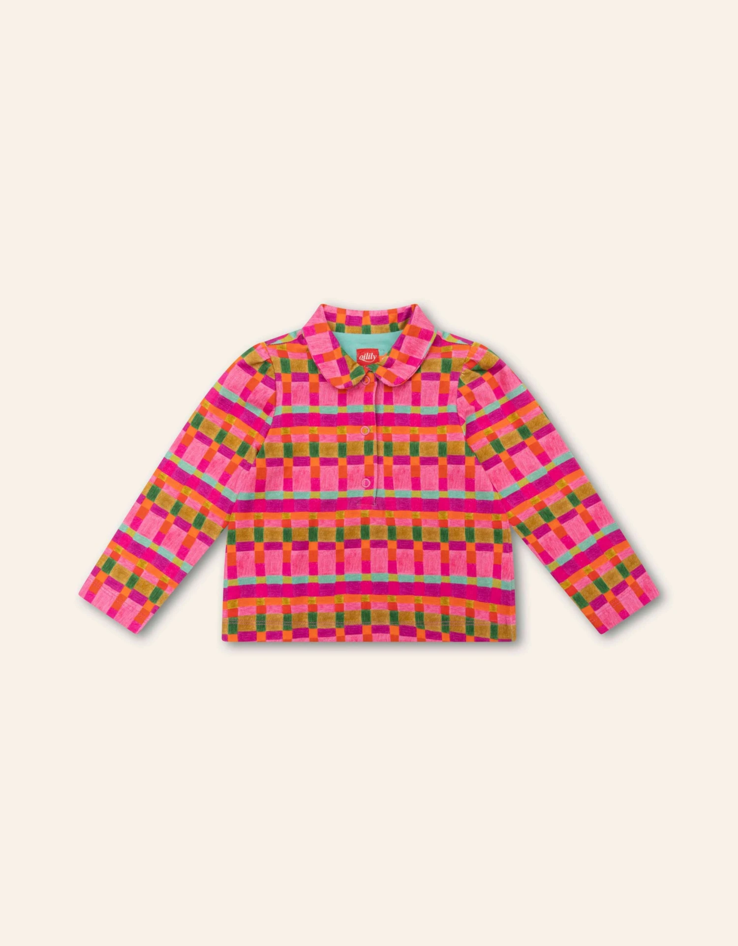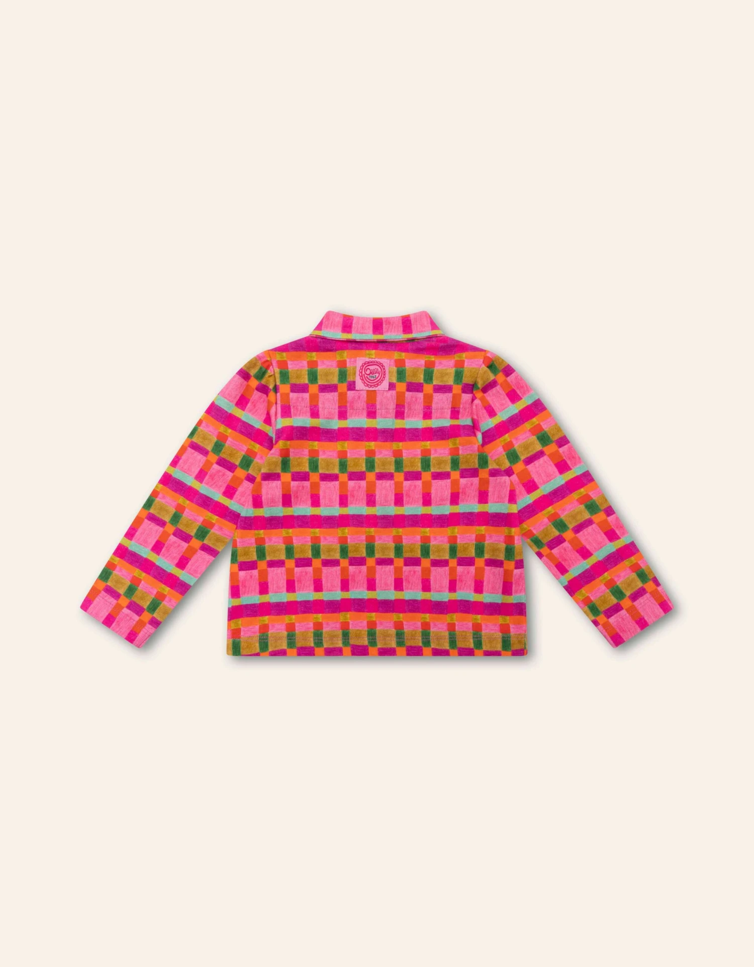 Digitaal tekenden we deze blije ruit die we Crayon Check hebben genoemd. Het staat op en top vrolijk met al die gezellige kleuren. Dit shirt heeft lange mouwen en kraag met knoopsluiting.
