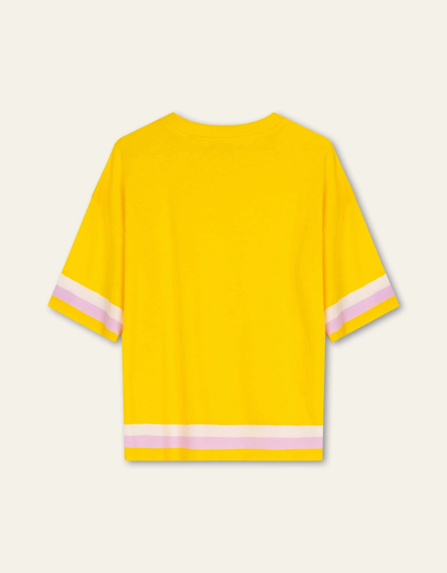 Zacht, licht en luxe. Zo voelt en draagt deze heerlijke top met ronde hals en korte mouwen. Aan de onderkant zijn de geribbelde strepen ingebreid en dat zorgt voor een premium afwerking. Een aantrekkelijk item voor vele momenten.