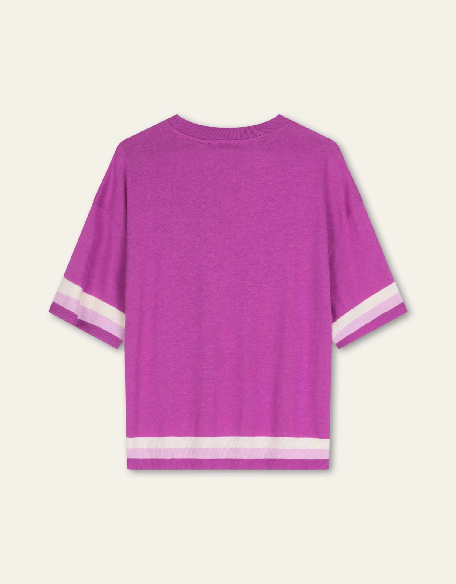 Zacht, licht en luxe. Zo voelt en draagt deze heerlijke top met ronde hals en korte mouwen. Aan de onderkant zijn de geribbelde strepen ingebreid en dat zorgt voor een premium afwerking. Een aantrekkelijk item voor vele momenten.