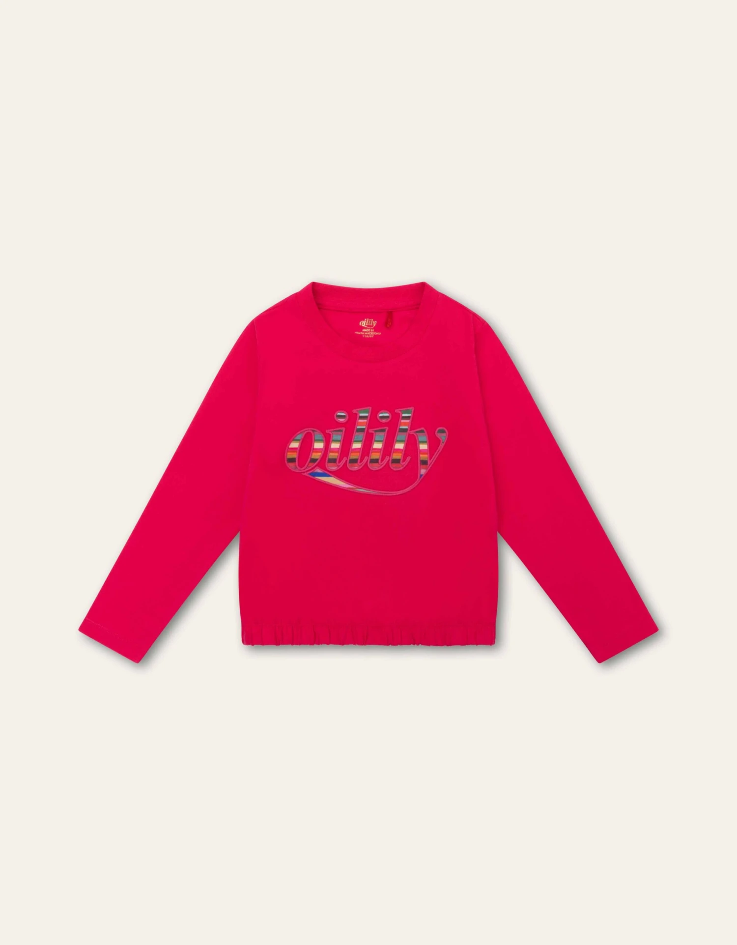 De Oilily letters in print Pieternella vormen samen een vrolijk Hollands plaatje. Want wist je dat deze strepen geïnspireerd zijn door de tulpenvelden gezien van bovenaf? Het staat speels op dit fijne lange mouwen shirt.