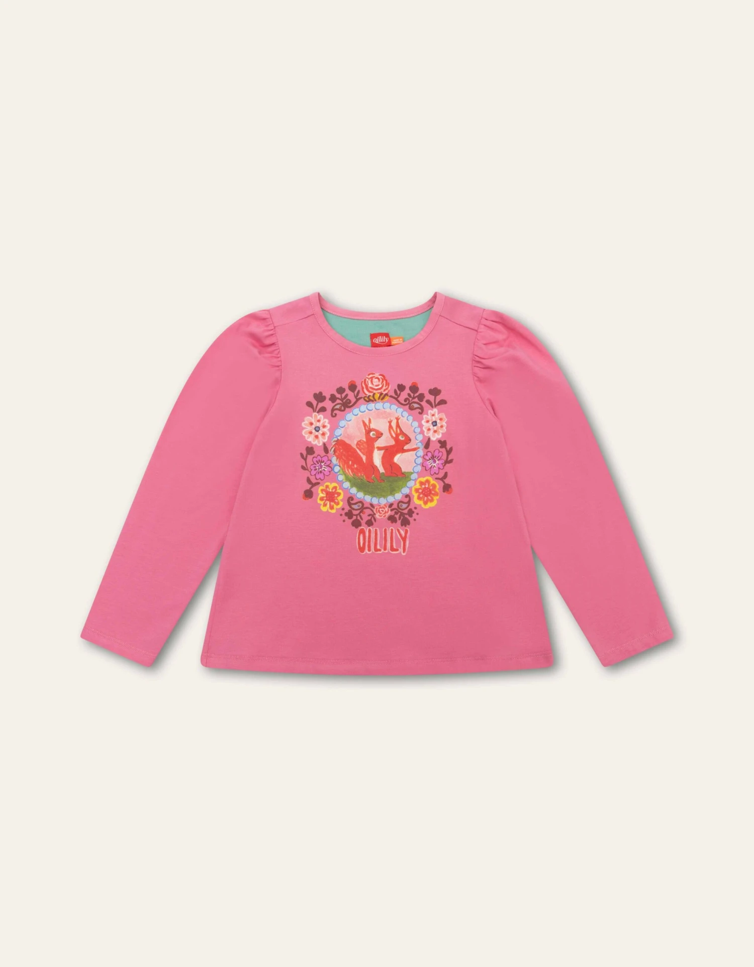 Easy to wear lange mouwen shirt met leuk artwork. Het zijn de vrolijke eekhoorns die ontsnapt zijn van print Maddy en nu op je buik staan. Dit shirt is gemaakt van katoen met een beetje stretch voor veel speelgemak.