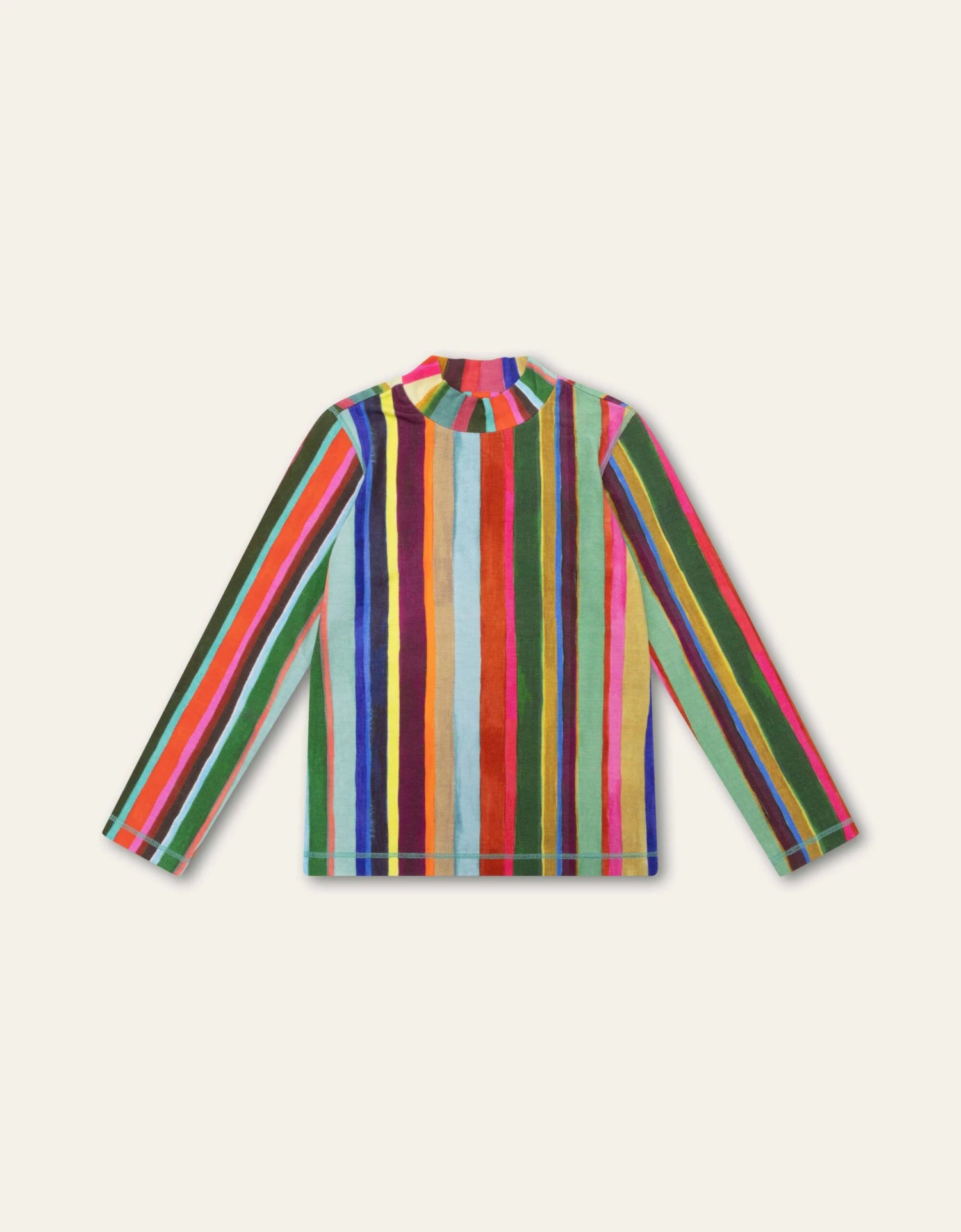 De print Pieternella is geïnspireerd door de tulpenvelden gezien van bovenaf. Het maakt deze vrolijke strepen nog leuker en het staat speels op dit fijne lange mouwenshirt met col.