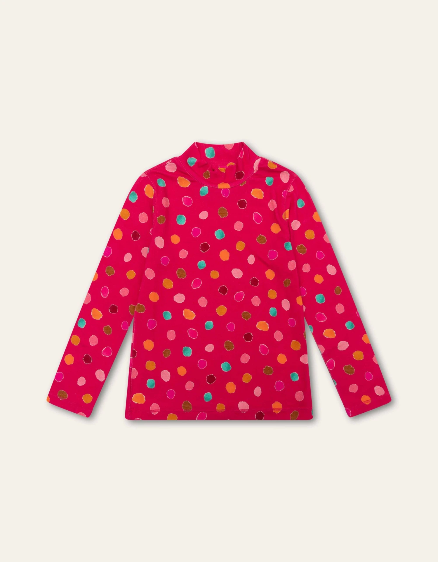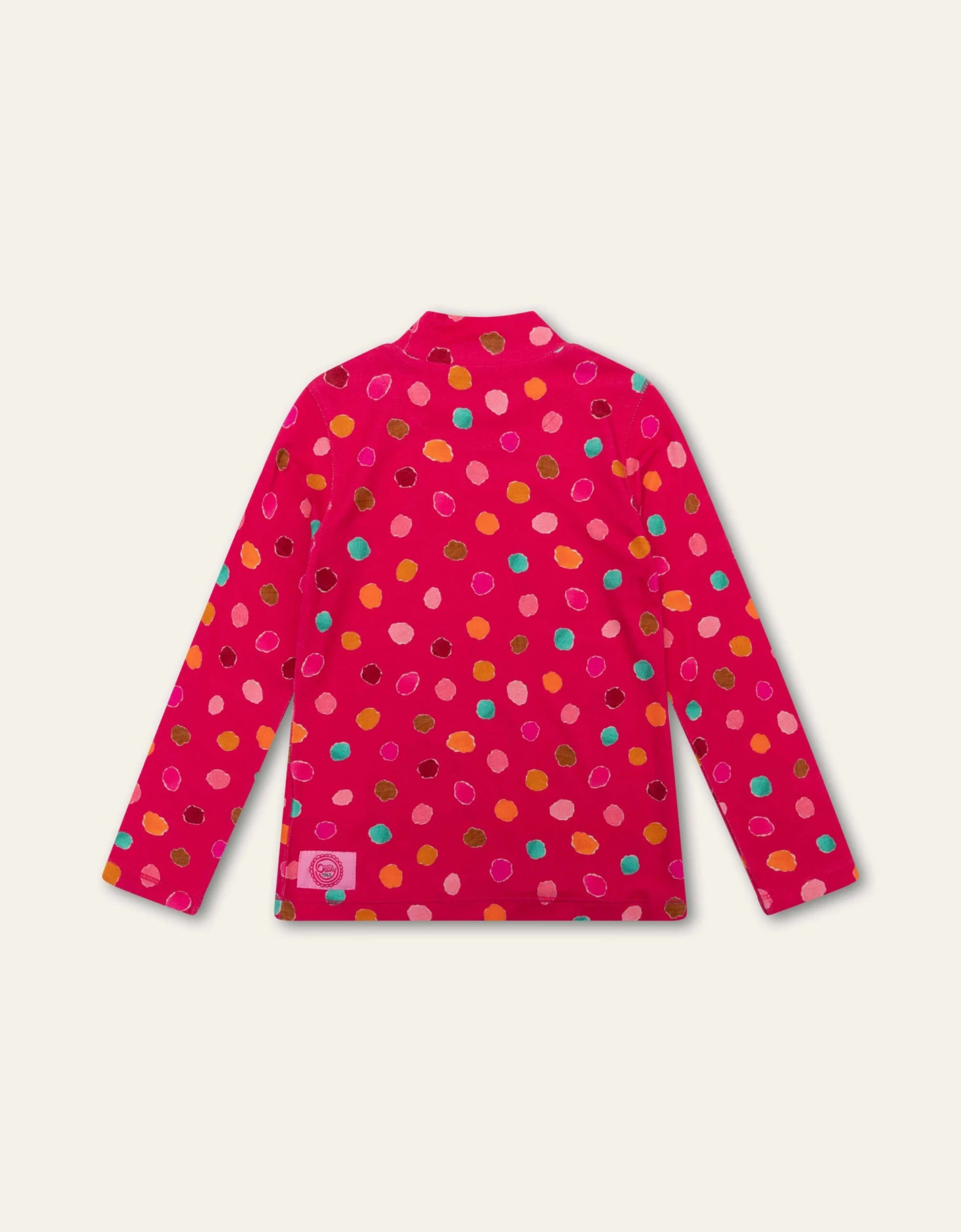 Tel alle stippen of zijn het toch eitjes gelegd door Wingsy de kip? Ze zijn met de hand gemaakt door gekleurd papier te scheuren en zo print Nessy Dots te maken. Het staat speels op dit fijne lange mouwen shirt met col.